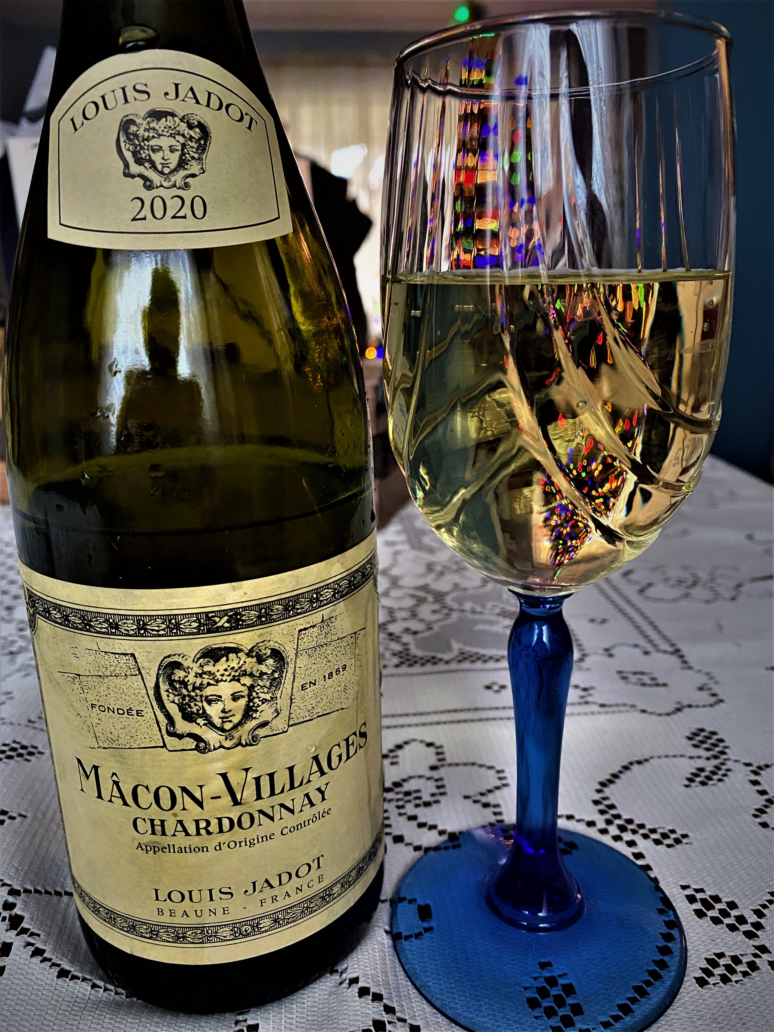 We had all the food even after twenty-four diners from Thanksgiving, so we all went to the missing sister’s house to continue the revelry. More Thanksgiving, more birthdays, more food and of course more wine. It was also the meeting of the dogs. The Louisville clan had just gotten a new puppy, as they got used to having their one son’s dog always underfoot and then he moved and took the dog with him, though that dog is always making appearances at their home as well. The one sister that didn’t come for Thanksgiving, just got a second dog and they are still training the puppy and they were afraid to leave the dog alone. The day reminded me of a French theatrical farce, because we had the puppy up on the second floor of the house, the older dog on the main floor of the house and the puppy from Louisville in the basement, but all three kept making appearances throughout the day and night. I decided to stake out my claim at the Dining Room table and I opened up a bottle of Louis Jadot Macon-Villages Chardonnay 2020. Louis Jadot began as a negocient in 1859 based in Beaune, one of the centers of the Burgundy region of France. The Louis Jadot firm has a portfolio of wines from the basic regional wines to some of the most lauded vineyards in the region. This wine is from the southern part of Burgundy, close to Beaujolais. Macon-Villages is the largest appellation of the Maconnais, as there are forty-three communes that can use this designation. The wine is done in Stainless Steel and it is very crisp and fruit forward with a nice finish of terroir.