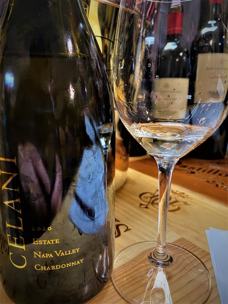The next wine that we had was a new wine for me, from the Celani Family Vineyards. We were tasting a Celani Family Vineyards Estate Chardonnay Napa Valley 2020 from the Oak Knoll District. The Chardonnay was whole-cluster pressed and fermented on its lees using forty percent new French Oak and sixty percent in self-stirring egg-shaped concrete fermenters. To maintain the natural acidity of the Chardonnay, malolactic fermentation was inhibited. The nose on this wine was excellent with notes of apple, pear, tropical flowers and brioche and some soft notes of spices and jasmine. The taste was a crisp balance of fruit and floral flavors with a very decent length finish of oak and roasted nuts. And to think, we had just begun.