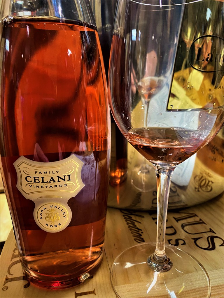 We started off tasting the Celani Family Vineyards Napa Valley Rose 2019 made from Cabernet Sauvignon. This wine was aged on the lees for nine months in neutral French Oak barrels. The wine was an estate grown Cabernet Sauvignon Rosé that was mouthwatering with its refreshing taste. Strawberries and rose petals wafted up to tempt the nose, after studying the deep pink color of the wine, and the wine delivered in spades, essences of strawberries, cranberries and red fruits with a layer of mineral terroir to make this wine an excellent dry finish and so satisfying. It was a great way to start the tasting off, and I do think that the other tasters are getting used to my lame photography sessions and my questions directed to our guest host.