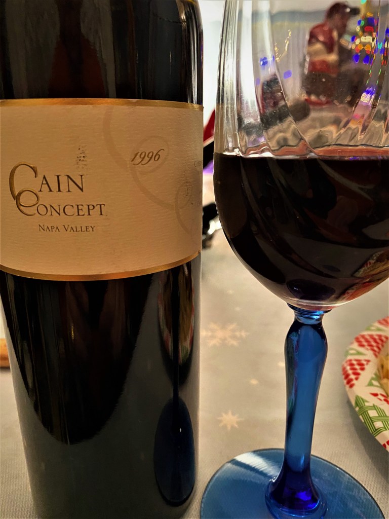 Our Brother-in-Law and his wife were the hosts and they went all out for the dinner menu. He cooked a stuffed turkey in a gas-fryer on his front porch (I will add that my Bride also made stuffing and Armenian Pilaf) as sides for the main courses. He also cooked Apple-stuffed Pork Tenderloins in an oversized electric oven (my Brother-in-Law loves gadgets) and he also prepared a classic rendition of a Standing Rib Roast. One of the wines I brought for the evening and to pair with the Standing Rib Roast was also for my Bride, as we enjoyed Cain Vineyard and Winery Cain Concept Napa Valley 1996. The Cain Vineyard is located at the crest of Mayacamas Range that overlooks the Napa Valley and Saint Helena. While Cain Concept, is from vineyards lower down the mountain side going from Yountville to Oakville to Rutherford to St. Helena; known as the Benchland and all very special real estate of its own. This wine is a blend of seventy-eight percent Cabernet Sauvignon, seventeen percent Merlot, and five percent Cabernet Franc. Cain Concept is handled by the winery the same way as they produce Cain Five (which is the mountain vineyard) and it takes a total of just over three years of production. There are no notes, but I do know the wine is barreled as I have seen them stacked. The wine had a beautiful deep color for a twenty-five-year-old. The nose had softened and didn’t have bright fruit notes. On the palate the wine was layered and tasted more like an aged Medoc, which is not surprising and it had a nice long finish of terroir. I did notice that some were a bit surprised at what an older aged wine tastes like, because they are used to having big jammy fruit bombs from California and this wine was much more elegant.