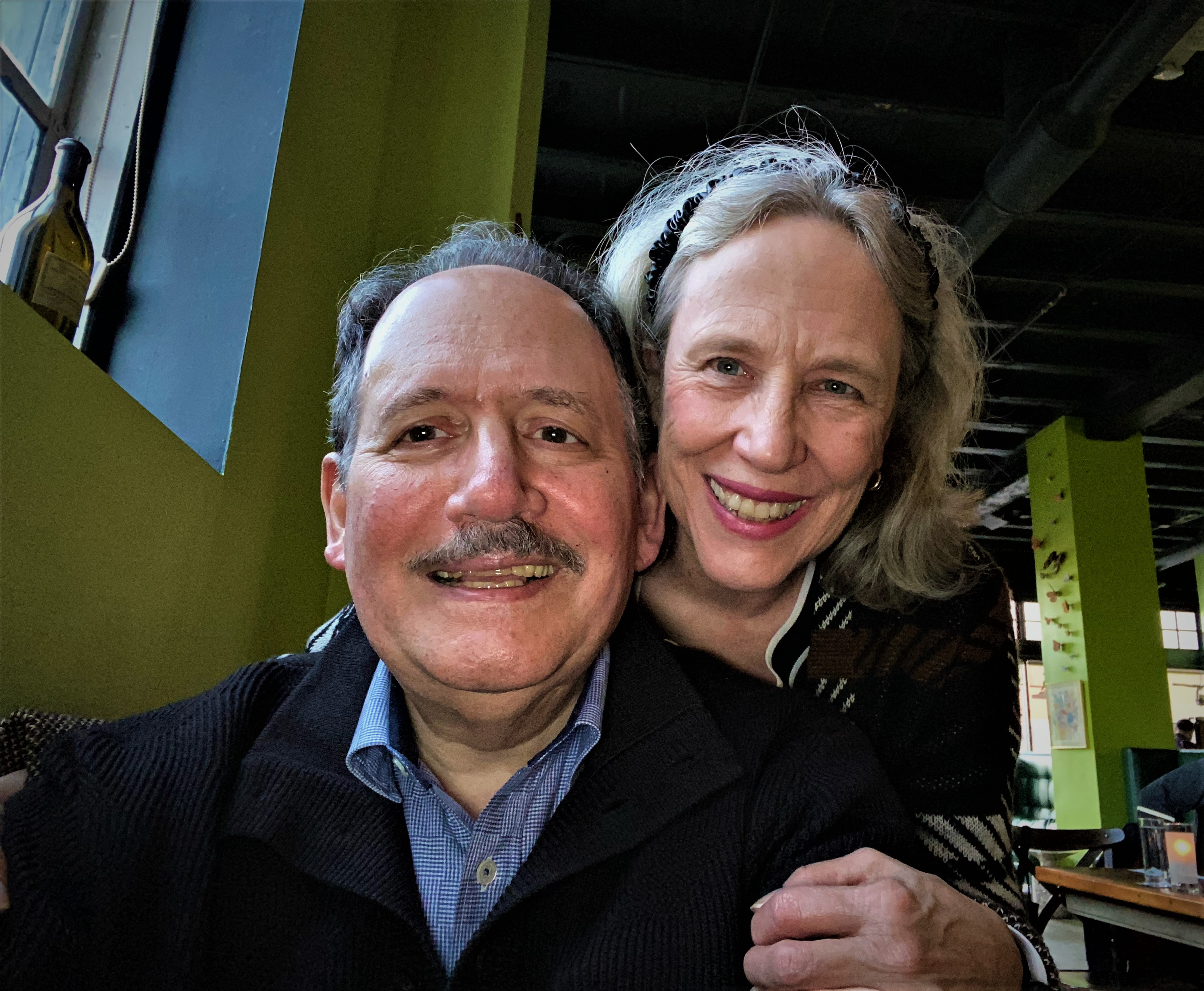 As we were seated, we were informed that we could only dine for ninety minutes, which seems to be the norm, since the draconian rules of dining out have been removed by our harridan. Dinner at Chartreuse Kitchen and Cocktails is fun, as it is a tapas style restaurant and they tend to bring out dishes as they are finished, rather than a set order and the meals are designed for sharing. I will relay the dishes as they appeared at the table. The first dish that arrived was the Potato Pierogi, with Corned Beef, Brussels Sprout Salad, Beer Mustard and Sour Cream. We had just finished this plate when three dishes arrived simultaneously. We had a plate of Grilled Broccolini with Romesco Sauce, Scallions and Duck Skin. Scallops with Chestnut, Blood Orange, Pomegranate, Apple and Oxalis. Tortellini with Duck Confit, Sweet Potato, Parsnip, Leeks in a Cream Sauce. So, we both asked for a side plate and created our own plates. They had several fun desserts, but we decided to split one as we were quite full, so we had some coffee and the Lemon Pistachio creation of Lemon Curd, Mascarpone Mousse, Roasted White Chocolate, Blood Orange and Mint. And it seems that we had time to have another traditional pose with the distinct background walls in chartreuse; and I take lousy selfies.
