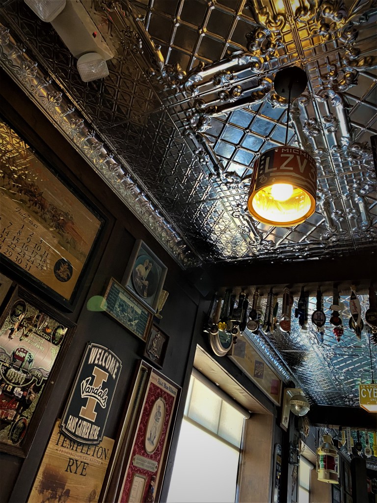 Butter Run Saloon * Spirits * Nourishment * Character* is the basis for a recent get-together. If I leave it to my Bride, we will always dine at the same restaurant, have the same meal and the same wine. Not that there is anything wrong with that, but it would make for a lousy blog, in my opinion. We were going to meet one of her cousins and her husband, have a meal and then go to her mother’s house to wish her a 96th Happy Birthday. We were on the East side of town and I found a restaurant that sounded interesting, and the Eastsiders had seen this place, but never ventured there, until now. It was one of those places that I instantly felt comfortable in, long and narrow with the old-fashioned plank wooden floor, embossed tin ceiling, tables that were shadowboxes of Detroit nostalgia, and so were the walls. They tout themselves as having the larges whisky selection in the state. I know that it doesn’t sound like a place for us, but I called to make a reservation, which was no, and to ask if they have a wine list, which was a yes.
