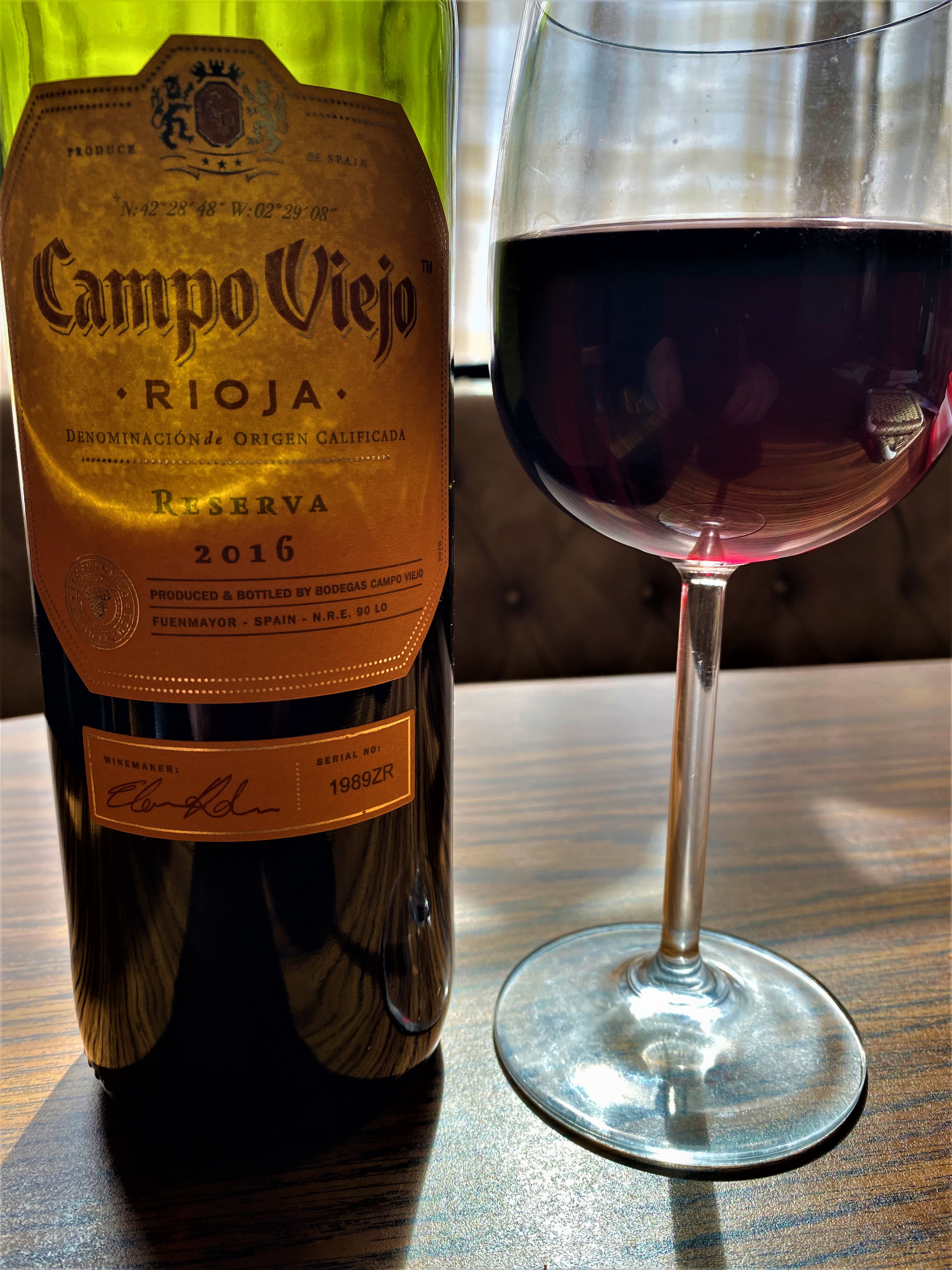 Bodegas Campo Viejo Rioja Reserva 2016 is from a major Spanish wine producer based in Rioja. Their first vintage was 1959. Campo Viejo sources their fruit from all three sub-regions of Rioja and of course their principal varietal is Tempranillo, though they also make other wines in an assortment of styles. In 2009, the Rioja governing board allowed new acreage to be planted with white varieties uncommon to the region. This project is being extended to some other wineries owned by Viejo’s parent company, Domecq Bodegas, which is owned by Pernod Ricard. This wine is a blend of Tempranillo with Graciano and Mazuelo. Since it is a Reserva, it has been aged for four years. The wine offered notes of black fruit along with vanilla, clove and pepper. On the palate, the ripe fruit was accompanied with tinges of spices and tobacco, the tannins were elegant and soft; and the wine finished with a nice medium count. It is a good thing that I bought some of this wine for my Bride to try, as somehow, I neglected to take a photograph of the wine, but I was very impressed, and I still maintain a long-time love affair with Rioja.
