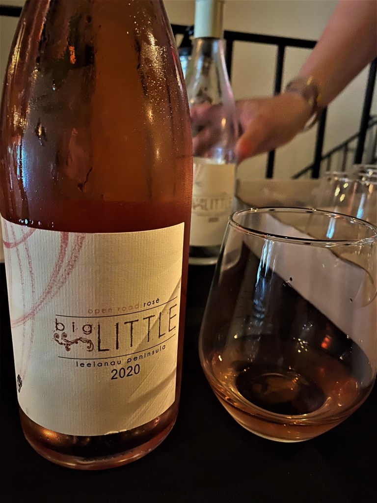 The first wine that we were given was bigLITTLE Wines Rosé “Open Road” Leelanau Peninsula 2020. All of the bigLITTLE Wines have names evoking nostalgia to the two Laing boys and this wine evoked family road trips from their home, and I have to say that road trips were very prominent and still are to Michiganders and the home of the original Big Three automotive corporations. The wine is a blend of fifty percent Pinot Gris, twenty-five percent Marechal Foch and twenty-five percent Riesling. The fruit was hand-picked, crushed and gently pressed together. The wine was fermented in Stainless Steel and three-hundred cases were produced. This dry rosé wine had notes of strawberry and hard candy, while on the palate fresh strawberries, juicy with a crisp acidity that made you want to have another taste. A good first wine or to enjoy on a nice summer day with a casual dinner.