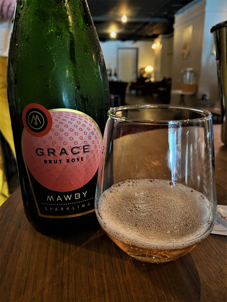 Even before we started to enjoy the first wine, they came around and poured the second wine for tasting and it was Mawby Sparkling “Grace” Brut Rosé, Leelanau Peninsula NV. The wine is a blend of seventy-nine percent Pinot Noir, nineteen percent Chardonnay and two percent Regent. The fruit was hand-harvested and had whole-cluster gentle pressing and only the juice from this first pressing was saved for this cuvee (the harder pressed juice which contains more phenols, tannins and acid are reserved for other sweeter sparkling wines). After Stainless Steel fermentation, the young wines are blended with older, reserve wines before bottle fermentation in the Methode Champenoise and tirage ageing of fourteen months culminating with a dosage of Brut wine. This pretty pale rose wine had notes of red fruits and on the palate, there were tones of black cherries and red berries mixed with that charming yeasty flavor, with a crisp and dry finish. A very easy drinking wine that would add festive notes for any dinner’s first wine, or by itself, just with friends.