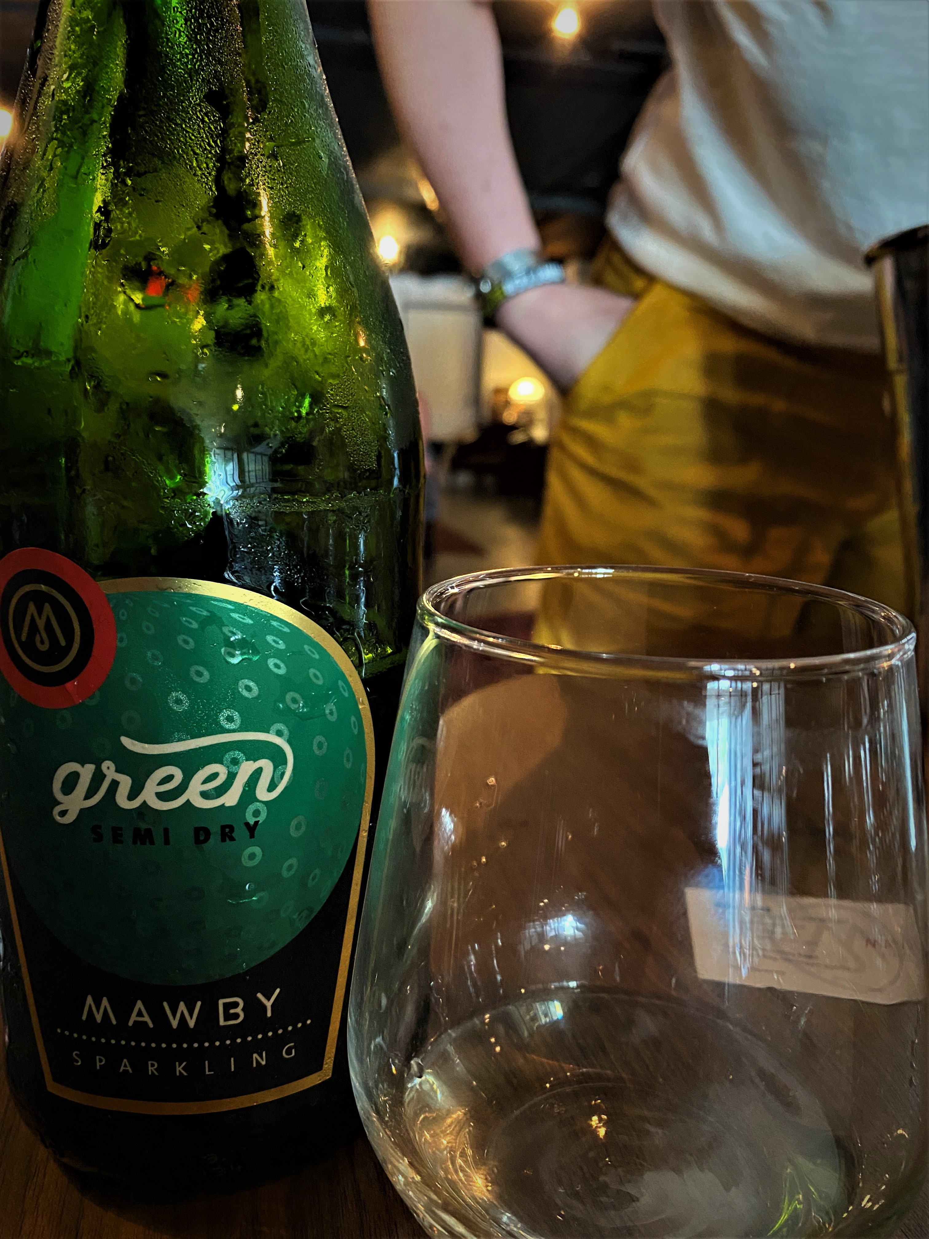 The last wine of the tasting was Mawby Sparkling Semi-Dry “Green” American NV. This is the only wine from Mawby that we had that is produced by the Charmant Method or the Tank Method, a more economical way of producing bulk wine that is used around the world. This wine is made from seventy percent Cayuga and thirty percent Riesling and the fruit is sourced from Michigan, California and Washington State. The grapes for this cuvee are gently pressed, as they only use the juice from the first pressing for this wine and after initial fermentation the secondary fermentation is done in the tank. The soft, pale gold colored wine offered notes of citrus and florals and on the palate tones of apricots, lemons and tropical fruit in a slightly sweet wine with high acidity and a crisp finish. I guess “Green” as in a fresh and young wine and very easy to drink, as we were leaving The Royce, I ran into a fellow Instagram blogger and his wife, who I recognized and I introduced myself, by my nom-de-plume which he recognized, as well as my Bride.