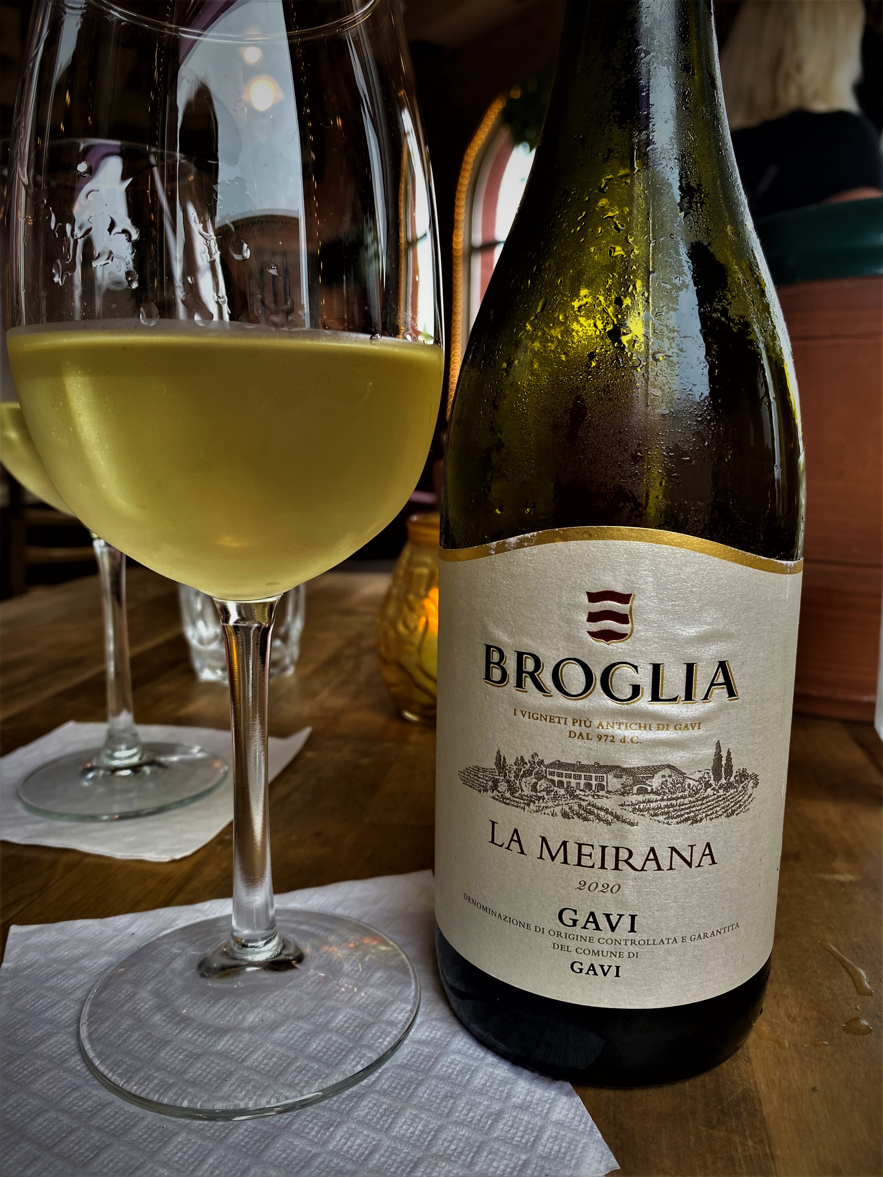 While The Vierling touted the Marquette Harbor Brewery, they had a rather eclectic and terse wine carte and I did find something interesting. We had a bottle of Broglia “La Meirana” Gavi DOCG del Commune di Gavi 2020. La Meirana is a thousand-year-old estate with sixty-five hectares of vineyards by Broglia, who were in and still are, also in the textile industry and is managed by the third generation of the family. The estate was bought in 1972 and a new winery was built in 1983. In 1988, the DOCG was granted for this pure Cortese di Gavi wine which has a history going back to the 1600’s, and the famed white wine of the Piedmont. After fermentation the wine is left to mature for six months on the lees in Stainless-Steel. The wine is a light straw color with greenish tints. The wine offered notes of green apples and florals, and on the palate, a bone-dry crisp fresh and fruity wine, with nice acidity and a good medium length finish of terroir and almonds. A perfect wine for our dishes.