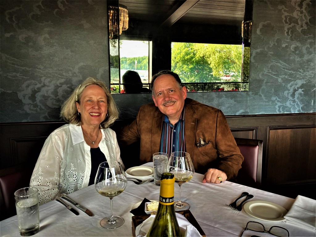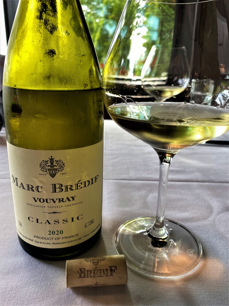 We were seated at a table overlooking the Walloon Lake and you really couldn’t have asked for a better table. I even have to mention that one of the walls in the Men’s Room kind of made me homesick for my cellar; I later found out that the Lady’s Room did not have such décor. We started off with two appetizers. My Bride had the Ahi Tuna Tartar with Organic Mixed Baby Greens, Mango, Avocado, Pickled Red Onion, Peanuts, Cracker Ring, Honey Lime Vinaigrette and Blood Orange Aioli. I had the Gnocchi with Wild Mushrooms, Roasted Garlic and Sherry Cream. We started off with a bottle of Marc Bredif Vouvray Classic 2020 one of the many labels that are part of Domaine de Ladoucette. The original estate dates back to 1787, when the Comte Lafond bought the estate from the illegitimate daughter of Louis XV and, to this day, the estate is owned by his descendants. Marc Bredif created sparkling Vouvray in the early Twentieth Century. The cellar goes back to the Tenth Century with vintages back to 1874. Baron de Ladoucette purchased Marc Bredif in 1980. The wines are now made at the Chateau du Nozet of Ladoucette. The “Classic” means the traditional interpretation of Chenin Blanc Vouvray. The soils are mostly chalk clay, but some are flint clay, and most of the vines are twenty-five to thirty years of age. The grapes are hand-picked, and undergo pneumatic pressing, and only the free running juice is used for this wine and the juice is left to clarify for almost two days. Two months of temperature-controlled fermentation, followed by nine months on the lees in Stainless Steel vats. The pale-yellow wine offers notes of peach and pear, along with citrus. On the palate, the tones of pineapple and citrus, some lemon zest in a big full wine with a nice medium count finish of exotic fruits and terroir.