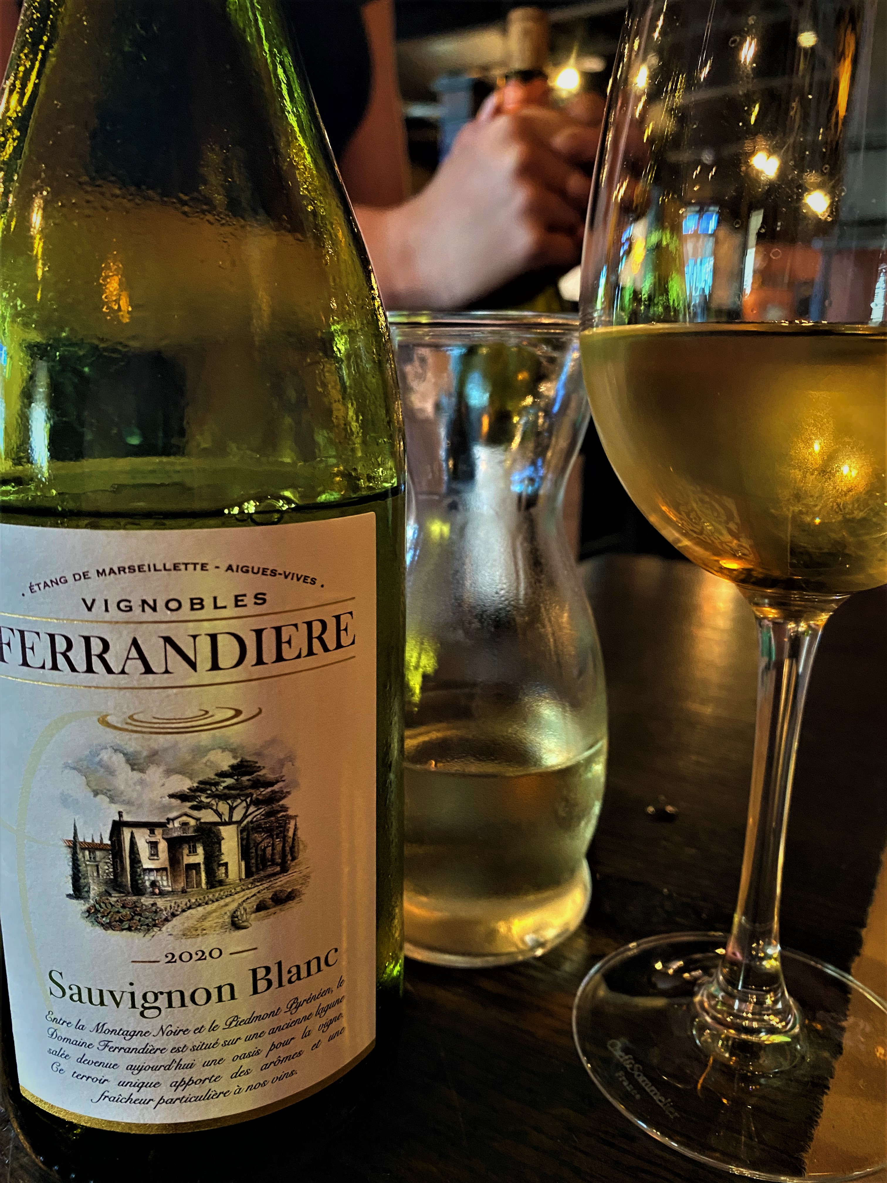 I had thought that we could start with a country style Pâté with all the accoutrements, but that idea was vetoed as being too heavy for the long drive home, my Bride can be so thoughtful and realistic, while I guess I just stay a hedonist. My Bride wanted to be healthy, so she ordered and now don’t be surprised, the Lemon Fried Whitefish Caesar Salad (but they were able to bake the Whitefish in Lemon (so she was thrilled)). She is always trying other dressings, especially when they are house-made, and this salad came with Parmigiano-Reggiano. The other bonus was that the Whitefish came from John Cross Fisheries that is quite famed for the region (and also makes great Smoked Whitefish that can be bought at their shop). My Bride had enjoyed Domaine de la Ferrandiere Sauvignon Blanc Pays d’Oc IGP 2020. The estate is located between Corbieres and Minervois in the ancient wetlands of the Languedoc. This area was drained under the command of Louis XIV at the end of the 17th Century. For over a century the property was owned by the Gau family and they sold the estate to Domaines Paul Mas in 2013. They specialize in single varietal wines from their seventy hectares of vines. I couldn’t find any production notes, but I will presume that the wine was produced in Stainless Steel vats, but I did find a curious fact that the vineyards are flooded for forty days after each winter, in an attempt to regulate the natural salinity of the soil. This technique allows the vines to be grown on ancestral rootstock, as opposed to American rootstalk, as the vineyard was protected from phylloxera. The Pays d’Oc IGP basically is the entire region of the Languedoc that are not made to the strict rules of the AOC level appellations. The wine was a pretty almost golden color with notes of green apple and white fruits. On the palate, soft fruit with high acidity that lingered into the finish, making it a very easy wine to drink, and beckoning for another sip.