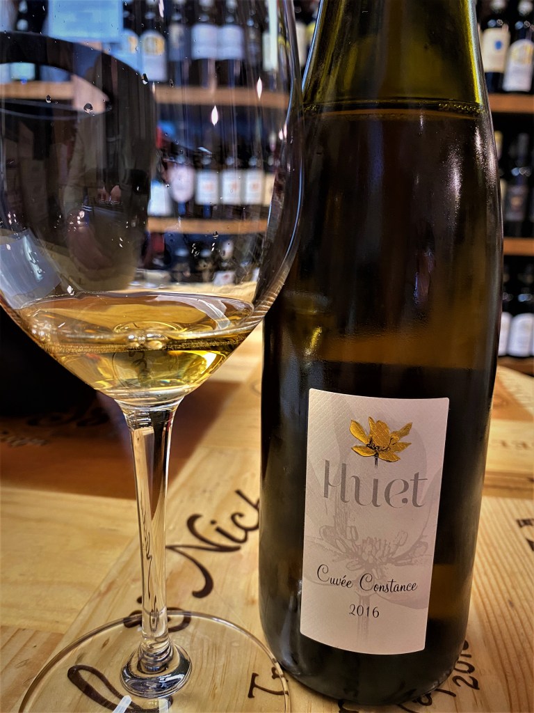 We followed that wine with Domaine Huet L’Echansonne or just Domaine Huet is the leading producer in the Vouvray region of the Loire Valley. They are known for their assorted Chenin Blanc wines, both for their richness and concentration of flavor, but also for their ability to age for a long time. The thirty-five-hectare estate has three main south-facing vineyards on a plateau above the river and smaller plots as well. Domaine Huet Cuvée Constance Vouvray 2016 and it is a tribute to Madame Constance Huet and only uses the late and concentrated grapes from the three main vineyards. This wine is only produced in small quantity and only in years when the high standards for this wine are met. “Constance” was the result of an accident. In 1989, during the final harvesting of the berries, the grape juice was so exceptional, that the fermentation lasted for months. After consultations, it was decided to blend only these long-fermented juices together and Cuvée Constance was born. Grapes are pressed and fermentation using only natural yeasts with half in demi-muids (600-liter capacity oak barrels typically used in the Rhone Valley) and half in traditional vats for six months and a production of five-hundred cases. My first thoughts were that this pinkish-gold wine was honey, but then it revealed ripe pears and sweet spices with a delicious and long finish, and yes, I nursed this tasting for all it was worth.