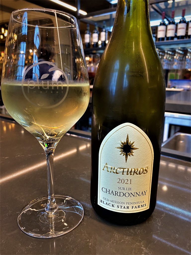 My Bride had a bowl of Chicken Lemon Rice Soup and a Caprese Salad.  I had a couple of Beef Tacos with a side of Macaroni and Cheese.  Then my Bride had a frou-frou coffee drink, so someone had to be the responsible one and have a glass of wine, for the sake of having an article.  I had a glass of Black Star Farms Arcturos Sur Lie Chardonnay Old Mission Peninsula 2021, to remind people that Michigan has a fine wine industry.  Afterall, Michigan is the seventh largest producer of table wine in the United States of America.  This is a non-oaked style wine, which I presume to mean that it is produced using Stainless Steel vats.  The wine had a beautiful soft-gold color with lush floral notes.  On the palate tones of citrus, apple and pear in a medium bodied wine with a short finish with a subtle mineral tinge.