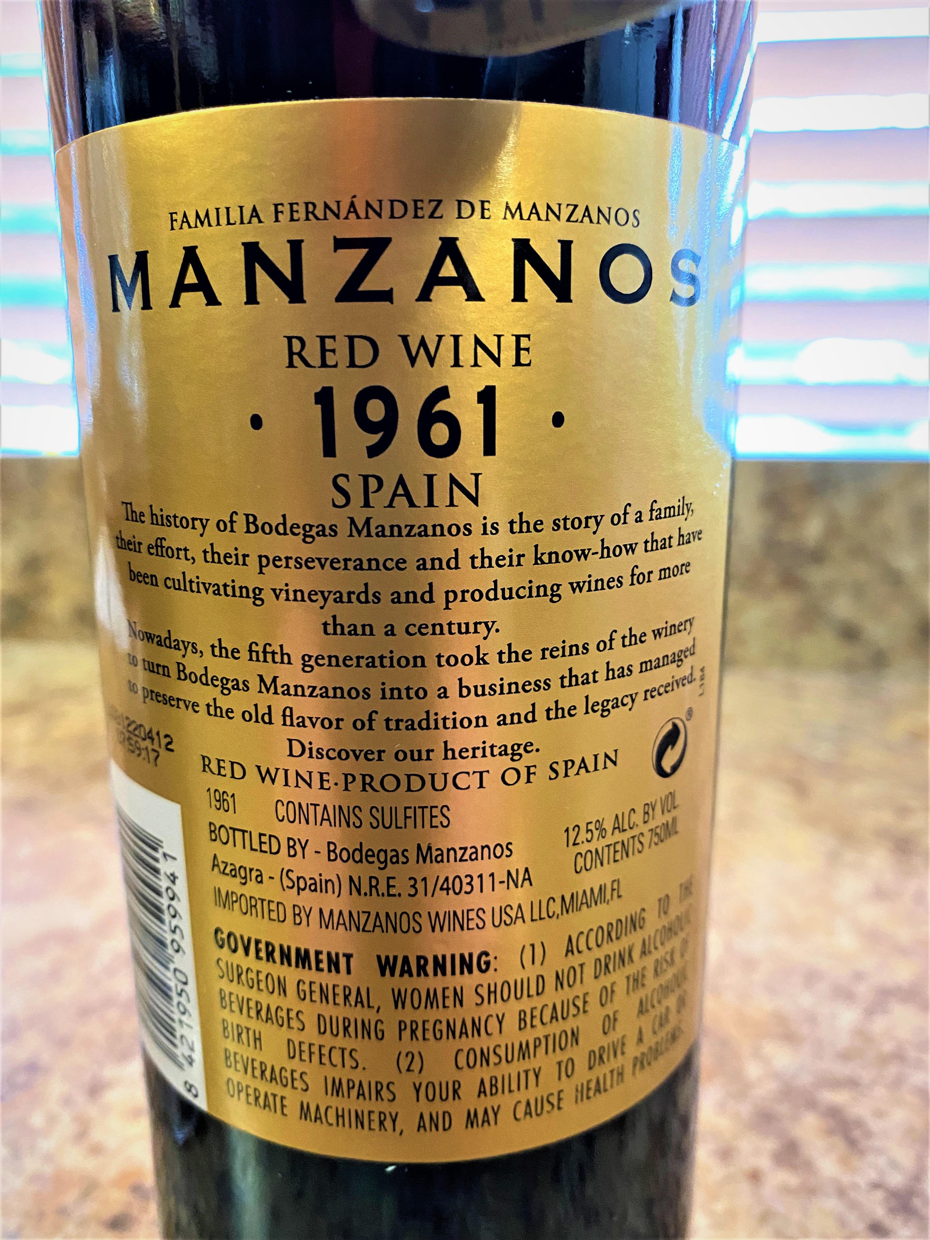 Familia Fernandez de Manzanos “Manzanos Red Wine 1961 Spain” was the relabeled wine that was reissued. The designation of Rioja was not as well known internationally, and it was not always indicated on the labels of wines from the region. The wine is a blend of Tempranillo and Grenache (Garnacha) and was considered a Vino Tinto at the time. The fruit was hand-harvested (automated wasn’t available then). The wine on the first time was aged for three years in French Oak. This wine was originally listed as a lighter wine at the time, and perhaps that is why it was left to age longer and then forgotten, as it was stored in a hillside cellar. There was six-hundred bottles of the original cache, every bottle was opened and four-hundred bottles were selected. The four-hundred bottles were emptied into vat and re-blended together, prior to re-bottling and re-labeling. The wine was a deep garnet with notes of dark fruit, cigar box and spices. On the palate there were tones of dark cherry, plums, licorice, soft tannins with secondary tones of coffee, vanilla and balsamic tastes. The wine surprisingly had a shorter finish with a touch of terroir. It was definitely a Rioja, even without being identified as one, and a very interesting wine to chew on and I needed to use one word, it would be elegant.