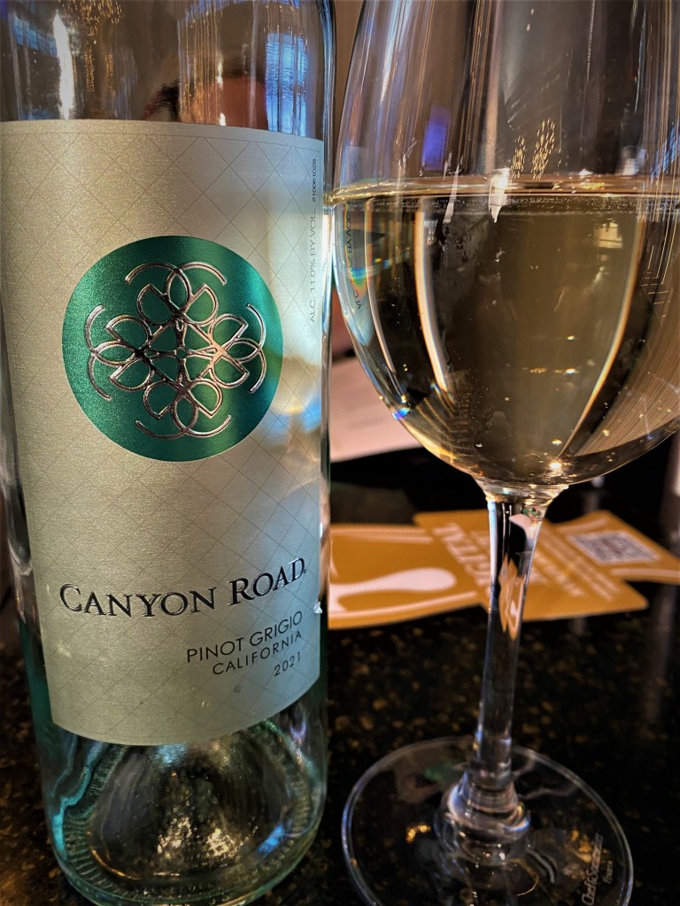 We were early enough to have a five-course dinner, but we just relaxed and ate and drank at a new restaurant in Detroit. We ate at Cat Cora’s Taproom and since I don’t watch television, I was unaware of her presence, but our waitress gave us a thumbnail sketch. Cat Cora is a world-renowned chef, author, television host and personality, health and fitness expert and mother of six. From Jackson, Mississippi to the Culinary Institute of America to two different three-star Michelin restaurants in France; who then began a career in television. My Bride was happy and immediately went for a glass of Canyon Road Pinot Grigio California 2021. Canyon Road Winery of Modesto, California offers all the basic varieties using fruit harvested from across the state and that is why they use the California AVA. They make a decent popular price wine that is not designed for cellaring, but for instant drinking. It is the type of wine that many restaurants and catering companies use as their “house wine” and give a decent bang for the buck.