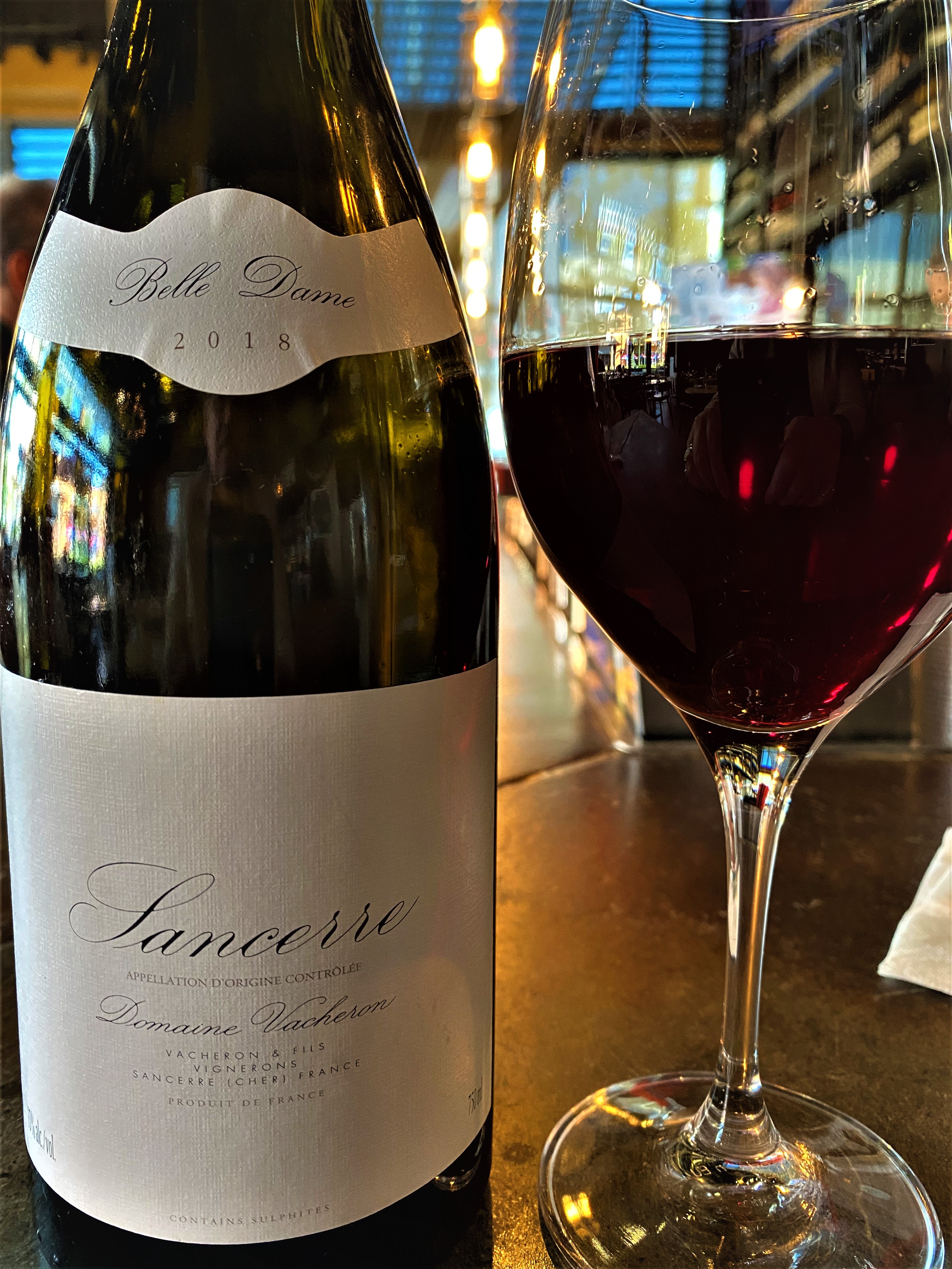 As for me, I had a glass of wine, as if you are surprised. Domaine Vacheron Cuvee Belle Dame Sancerre Rouge 2018. Domaine Vacheron is a highly regarded producer, now run by third generation winemaking cousins and considered one of the best in the region. One of the few that produce both white and red wines. The estate is almost fifty hectares on silex soils (clay and limestone based, topped off with flint). This wine is pure Pinot Noir and Sancerre overlooks the Loire Valley. They adopted complete biodynamic practices in 2005, in fact the only fertilizer that they use is compost. The fruit is hand-harvested and Stainless-Steel tanks are used for fermentation, and the winery uses a minimum amount of oak, though I have seen publicity photos of this Cuvee in French Oak barrels. This ruby-red colored wine offered notes of red fruit and smoke. On the palate the wine had tones of red cherries and plums, full tannins, saltiness or salinity and a beautiful finish of terroir. It was probably being served too young, but that is life. An excellent red wine in a land of white wines.