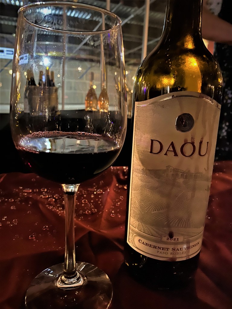 We found another table pouring wines and my Bride had a glass of Daou Vineyards “Bodyguard” Chardonnay Paso Robles 2020. George and Daniel Daou, two brothers who were originally in the IT industry purchased part of the Hoffman Mountain Ranch in 2007 and in 2012 purchased the other part of the ranch and they now had two-hundred-twelve acres. Stanley Hoffman with help from Andre Tchelistcheff created the first modern commercial winery in Paso Robles after Prohibition. The winery has four tiers or collections and the amount of aging in new French Oak is determined by the collection. The “Bodyguard” which is offered in a red and a white is from their Expressions Collection. All the estate fruit is hand-harvested and Daou Vineyards are certified sustainable by SIP (Sustainability in Practice). This wine is pure Chardonnay and underwent cold fermentation. The wine was aged for ten months in a mix of thirty percent new French Oak, thirty percent new American Oak and forty percent neutral French Oak. This was a nice example of a classic California Chardonnay with a soft gold color. There were notes of apples and pears, spices and a floral bouquet. On the palate tones of ripe fruit, including secondary tones of tropical fruits, spices and honeysuckle in a buttery feeling with fresh minerality and a nice finish of terroir, curd and a touch of pineapple. A very refreshing wine on a beautiful Autumn evening.