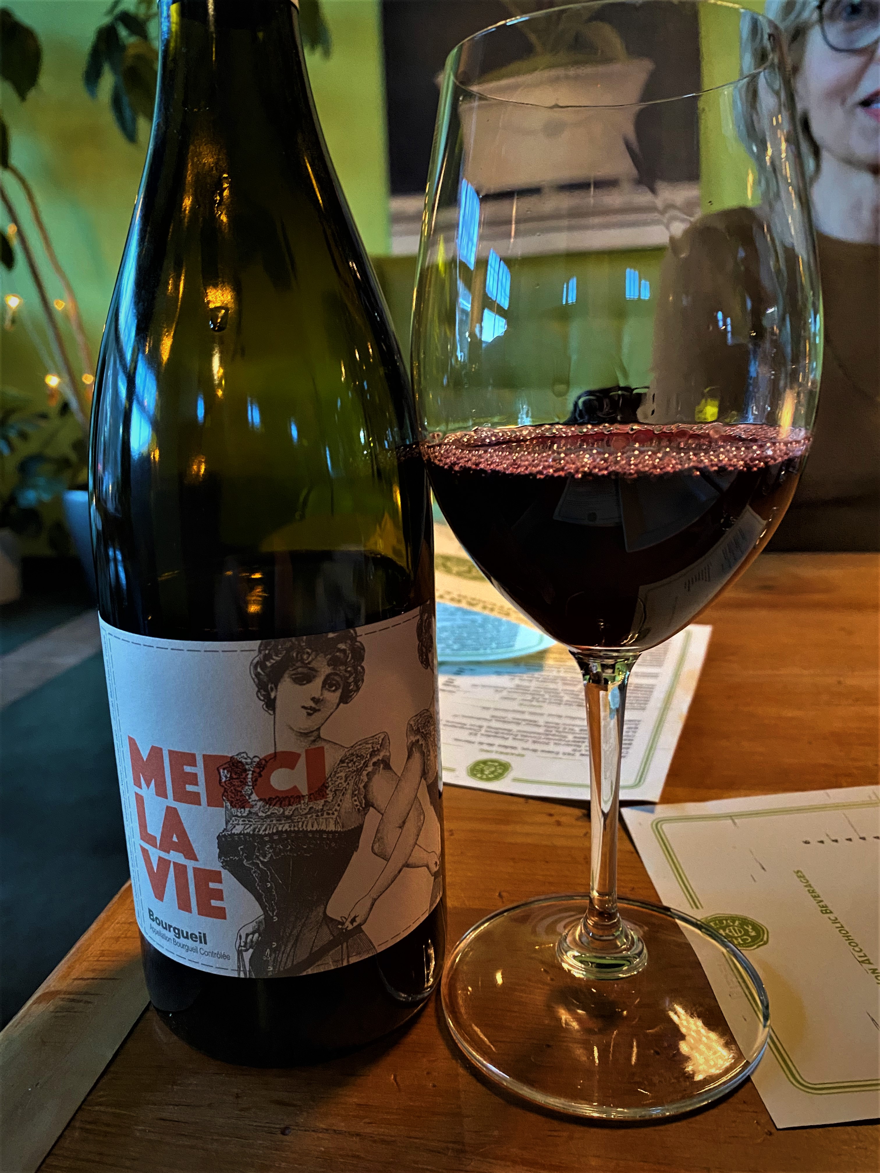 The three of us also enjoyed a bottle of Xavier Courant “Merci La Vie” Bourgueil 2020 from Domaine de L’Oubliee. Bourgueil is an appellation for red wines in the Loire Valley and must be at least ninety percent Cabernet Franc, and most of the time, the wines encountered are pure Cabernet Franc. The local name for Cabernet Franc is Breton, and not a reference to Bretagne, but to the 17th Century monk, Abbot Breton of Bourgueil Abbey who has been credited as the one who brought the variety to the region, planting and tending the vines. The region also is known for the alluvial gravel along the banks of the Loire River. The Domaine is organically farmed. After the harvest the grapes undergo maceration and fermentation in a concrete vat for thirty-one days, and then aged for ten months in concrete and bottled unfiltered. This pretty ruby red wine offered notes of red fruits and spices. On the palate a softer medium-bodied wine with tones of raspberry and cranberry with secondary tones of green pepper and the ethereal quality known as undergrowth, with a nice finish of terroir. The wine I would describe as more like an elegant Beaujolais Cru, instead of a Bordeaux feel. A wonderful way to spend the day.