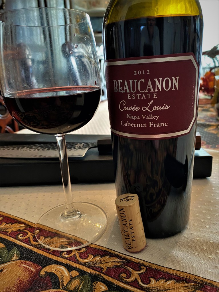 For main dinner, we were making two turkeys, that is why we had two roasters set up in the house, because we could not a twenty plus pound turkey, so we had to settle for a couple of smaller ones. Also, one of our guests brought us an eighteen-pound Standing Rib Roast, or if you prefer Prime Rib. They made it easy for us, as their butcher had cradled it and tied it, and the night before they had applied a rub. We had the meat dishes covered, we also had Roasted Cauliflower with Garlic and Parmesan, Roasted Brussels Sprouts with Bacon and Balsamic, Armenian Pilaf, Stuffing (there has to be stuffing with Turkey), and Mashed Potatoes. I always knew that I had several interesting wines in the cellar, but I recently had a wine at my local wine shop, that I thought was a real winner, especially with the Standing Rib Roast and I could make it work with the turkey as well. We had Beaucanon Estate Cuvee Louis Cabernet Franc Napa Valley 2012. Beaucanon Estate is located on the historic Longwood Ranch, that originally was part of land that belonged to the founder of Sonoma. It became the Longwood Ranch around 1860, and it was sixty acres owned by a dairyman, in the 1970’s Chardonnay was planted there. It is now ninety-four acres planted with classic Bordeaux grapes with sustainable and organic farming practices. The first winery was built in 1987 and production was for thirty-thousand cases; seven years later that created a state-of-the-art facility to produce twelve-thousand cases. The de Coninck family started this winery in 1987, and the family is a nine-generation wine merchant from the Right Bank of Bordeaux going back to 1740. Louis de Coninck joined his father in Napa Valley after training in Saint Emilion. This wine undergoes fermentation and maceration in open barrel and concrete with skin contact for four to five weeks, followed by fourteen months in a mix of French and American Oak, with thirty percent new. A nice deep ruby/garnet wine with notes of red and black fruit, candied cherries and spice. On the palate black fruit dominates with some cocoa, the tannins were very smooth and elegant, with nice acidity and a finish of terroir. My Bride was very happy with the wine and food, but not with the behavior of the guests.