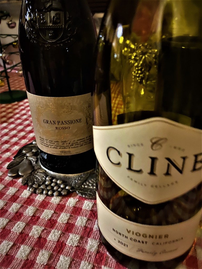 MFor the beverages we went with two of our latest go-to wines to make sure that we had enough, the idea of running out, just sounds terrible. For the white wine drinkers, we had Cline Family Cellars “Seven Ranchlands” Viognier North Coast 2021. Cline Family Cellars is a producer based in Carneros and known for Zinfandel and Rhone varieties and established in 1982 in Oakley. Fred Cline is one of the original Rhone Rangers of California. The “Seven Ranchlands” is a way of honoring both the seven children of the Cline family, and the seven vineyard ranches. The fruit for this wine is from the Catapult Ranch Vineyard in the Petaluma Gap, and the balance is from the Diamond Pile Vineyard at the base of the Wild Cat Mountain. The grapes are handpicked at night, where they are destemmed and pressed, and allowed to settle for forty-eight hours before racking. The Catapult portion was inoculated with wild yeast, while the Diamond Pile portion was allowed to ferment naturally in barrels. After fermentation, the wine was aged in neutral French Oak for six months before blending and bottling. The wine offers notes of mango, guava pineapple. On the palate tones of dried apricots, pears and banana in a full-bodied wine with nice acidity. And for the red wine drinkers Gran Passione Rosso Veneto 2020 a limited production wine made by Cantine Bertoldi. Cantine Bertoldi is known for their Valpolicella and Amarone wines. They were founded in 1932 and several generations later they now own fifty acres of hand-cared vineyards. They are now part of the larger umbrella wine producer and distributor Casa Vinicola Botter. They began in 1928 selling local Veneto wines. After World War II, they moved onto bottled wines and started exporting. Now in their third generation, ninety percent of their business is done overseas. The soil of the estate is basically clay, and this wine is a blend of sixty percent Merlot and forty percent Corvina. The grapes selected for this wine are hand selected and harvested, allowing for the grapes to dry on the vine, reducing the weight by about fifty percent. This technique is in the tradition of Apassimento (to dry and shrivel), just like how Amarone is made. After harvest, the over-ripe grapes are destemmed and undergo maceration and fermentation for fifteen days on the skins, and then malolactic fermentation occurs in the barrel aging. The wine is an intense purple color with notes of black raspberry puree, black cherry, cassis, black tea and dried violet blossoms. On the palate the wine is a medium-bodied red with intense flavors, medium acidity and medium tannins.