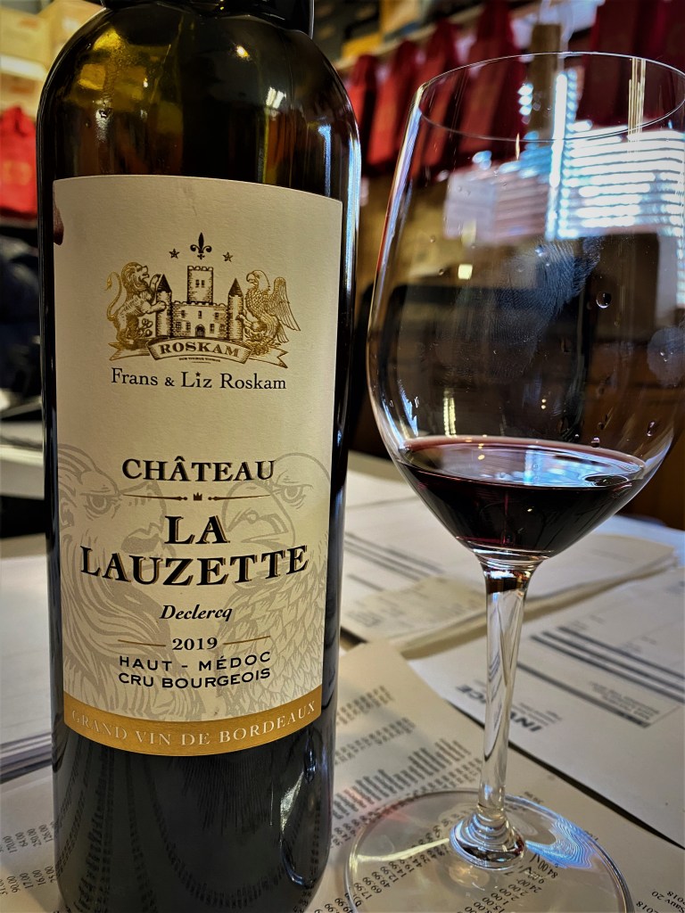 Chateau La Lauzette-Declercq Haut-Medoc Cru Bourgeois 2019 is part of the wines from Frans & Liz Roskam. The Brunot-Roskam family became the owners of Chateau Cantenac and they are now into the Fourth Generation of winemakers. Before being named La Lauzette-Declercq during the Nineties, this Cru Bourgeois from the Haut-Medoc was known as Chateau Bellegrave with a Listrac-Medoc appellation. M. Declercq, a Belgian owner, gave the winery its new name, and since 2005, the winery is managed by Frans & Liz Roskam. Haut-Medoc accounts for two-thirds of the Medoc peninsula; and is famed for its famous four Communes of Margaux, Pauillac, Saint-Estephe and Saint-Julien as well as Listrac and Moulis and they account for the majority of the wine produced in the Haut-Medoc. The soil for this region is basically thick gravel layers over heavy clay, which is perfect for Cabernet Sauvignon and as one gets further from the river, the soil is more clay which is ideal for Merlot. AOC Cru Bourgeois is awarded to about two-hundred-fifty chateaus and the list may change yearly and since 2010, the list is published in September. This term actually goes back to the Middle Ages, but was really defined in 1932 by the Bordeaux wine merchants to celebrate the wineries that did not make the 1855 Classification. The wine is a blend of fifty-five percent Cabernet Sauvignon, forty-two percent Merlot and three percent Cabernet Franc and the vines average about forty-years of age. After fermentation the wine is aged in oak barrels for twelve months. This deep red wine offers notes of dark fruits, violets, vanilla, and coffee. On the palate tones of blackberry, cherry, and blueberry with secondary tones of tobacco, good firm tannins, balanced and a nice lengthy finish of terroir. A perfect affordable wine from Bordeaux.