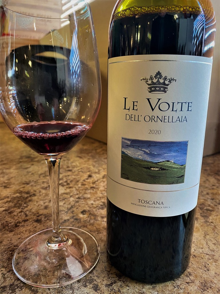 Le Volte Dell’ Ornellaia Toscana IGT 2020 is from one of the most famed producers in the Bolgheri appellation of Tuscany. It was from these Bordeaux-style blends that created the term “Super Tuscan” instead of using the famous Sangiovese. Wines that do not make the cut to become Ornellaia become the winery’s second wine Le Serre Nuove Dell’ Ornellaia with more Merlot and less aging. Their third wine is Le Volte Dell’ Ornellaia which is also more Merlot based. Ornellaia was founded in 1981 by Marchese Lodovico Antinori and the first vintage was in 1985. From 2002 to 2005, the estate was co-owned by Robert Mondavi and Marchesi De Frescobaldi, but since 2005 Frescobaldi has owned it outright. The wine is a blend of Merlot, Cabernet Sauvignon and Sangiovese. Each varietal underwent Initial Fermentation separately in small Stainless Steel tank, and followed by Malolactic Fermentation also in Stainless Steel. The wine was then aged for ten months, partly in barrique used previously for Ornellaia and partly in Concrete tanks. The ruby red wine offered notes of red fruits, tobacco, and spices. On the palate a sexy silky wine with tones of cherry, cassis, Mediterranean spices, lively acidity, tight tannins and a nice medium length finish of terroir and fruit. An easy drinking wine with or without food, but definitely with friends.