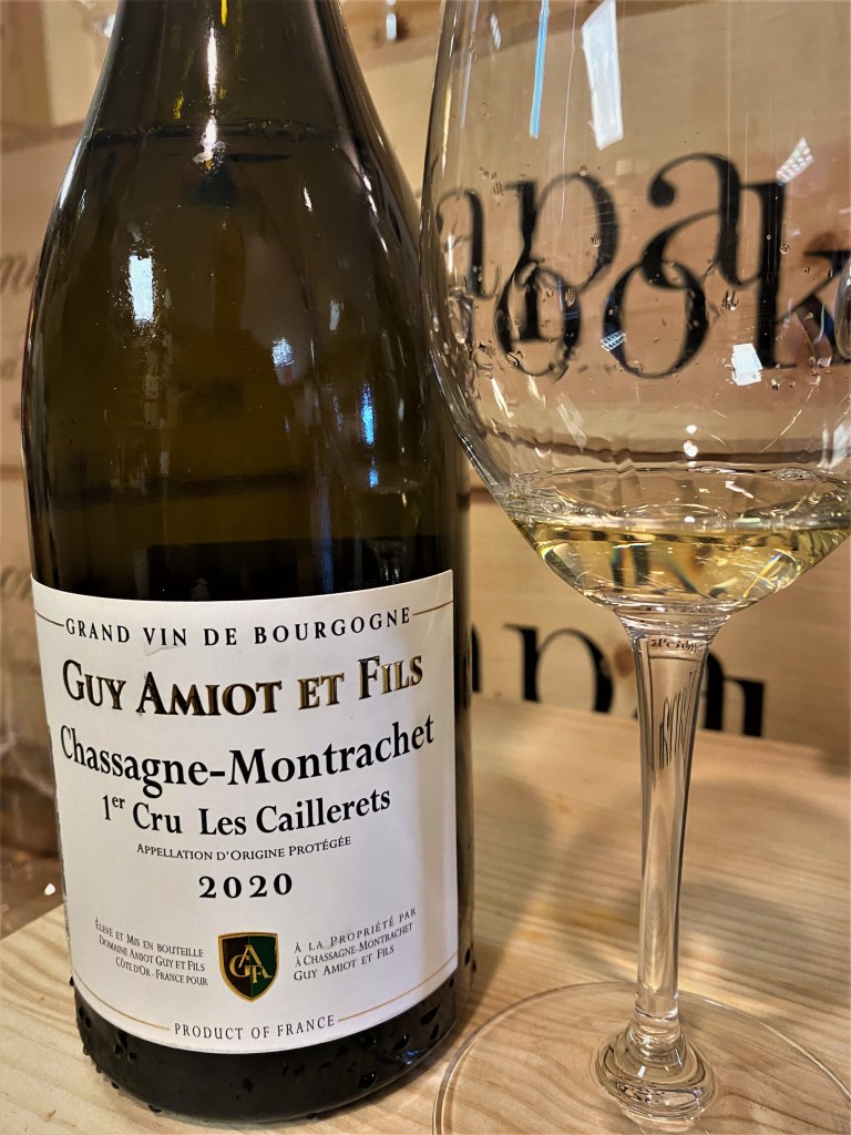 The first wine was Domaine Guy Amiot et Fils Chassagne-Montrachet Premier Cru “Les Vergers” 2020. Chassagne-Montrachet Premier Cru wine are sometimes referred to as the southern limit of Burgundy, because it is the last of a continuous flow of Premier Crus and Grand Cru vineyards. At the beginning of the last century more red wines were produced, but through the century this trend is now completely the opposite. The finest of the communes are from the north-east quadrant of the parish with rich limestone soils and full sun. The white wines age very well from this region and slowly mature in complexity over ten years or so. Les Vergers, or the orchards was once planted with fruit trees and is in the middle slopes of the Cote d’Or. Domaine Guy Amiot et Fils is based in the village of Chassagne-Montrachet; Arsene and Flavie Amiot founded the domaine in 1920 with the purchase of three plots which would later form part of Le Montrachet Grand Cru. The domaine continued through the namesake son and now his children control the estate and responsibilities. The Chardonnay vines are seventy-years of age planted on limestone, very close to bedrock on a plot that is .55 hectare in size. Grapes are hand-harvested, carefully sorted and initial fermentation takes place in a Stainless-Steel tank with local yeast, followed by Malolactic Fermentation. Then aged for twelve months in a mix of new and used French Oak barrels, followed by integration for six months in Stainless-Steel vats before bottling. A little over four-thousand bottles are produced annually. A soft golden-yellow wine offering notes of white fruits, honeysuckle, and tea. On the palate tones of white fruits, a touch of lemon and menthol, and some vanilla in a big, lively wine with a great finish of terroir and a touch of almonds.