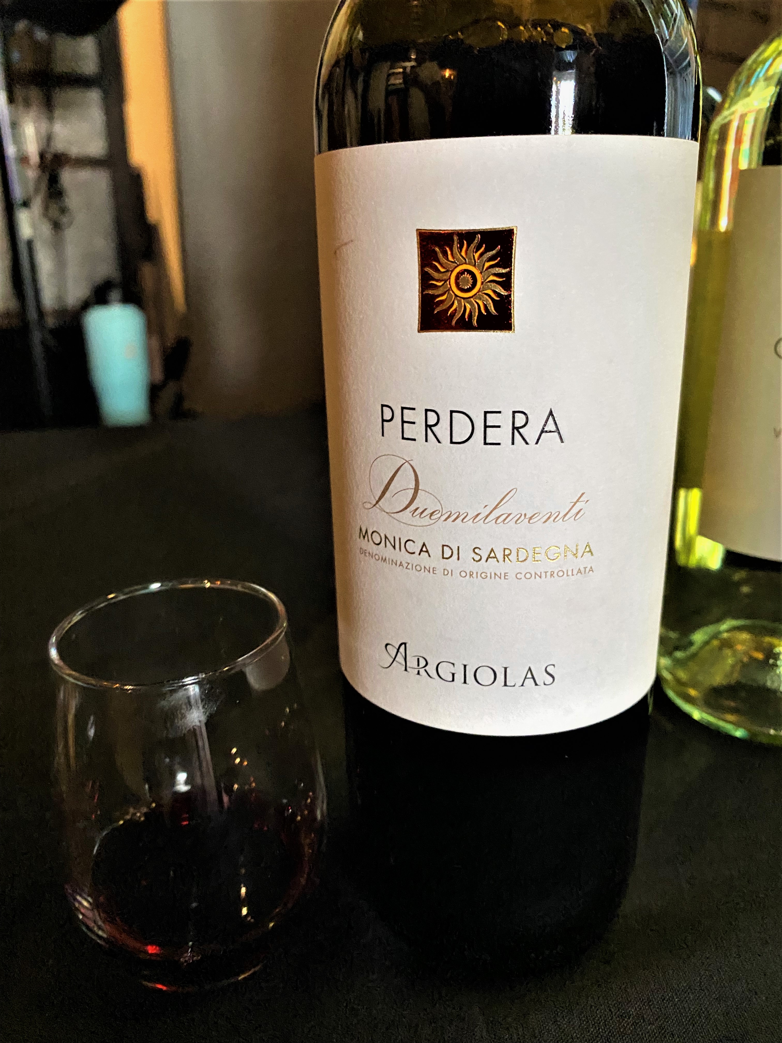 The second wine being offered for the tasting was Argiolas Perdera Monica di Sardegna DOC 2020. Perdera, means “place of many stones” and is from the grape Monica, that grows exclusively on the island of Sardinia. Some feel that it is from Spain, but no genetic links have been discovered. The grape offers low levels of acidity and must be harvested early, otherwise it ends up with excessive alcohol levels. It is found in both still and frizzante style wines and in a dry and sweet fortified style. The wine is a blend of ninety percent Monica, five percent Carignano and five percent Bovale Sardo. Initial Fermentation for about eight days, followed by about another eight days of Maceration and then Malolactic Fermentation all-in Stainless-Steel tanks. The wine is then aged for about eight months in French Oak, followed by four months in Concrete vats, with an additional two to three months in the bottle. A ruby-red colored wine offering tones of red fruit, florals, and spices. On the palate, the wine is medium-bodied with tones of cherry and plum, and gentle tannins and a short finish. A good table wine for charcuterie.