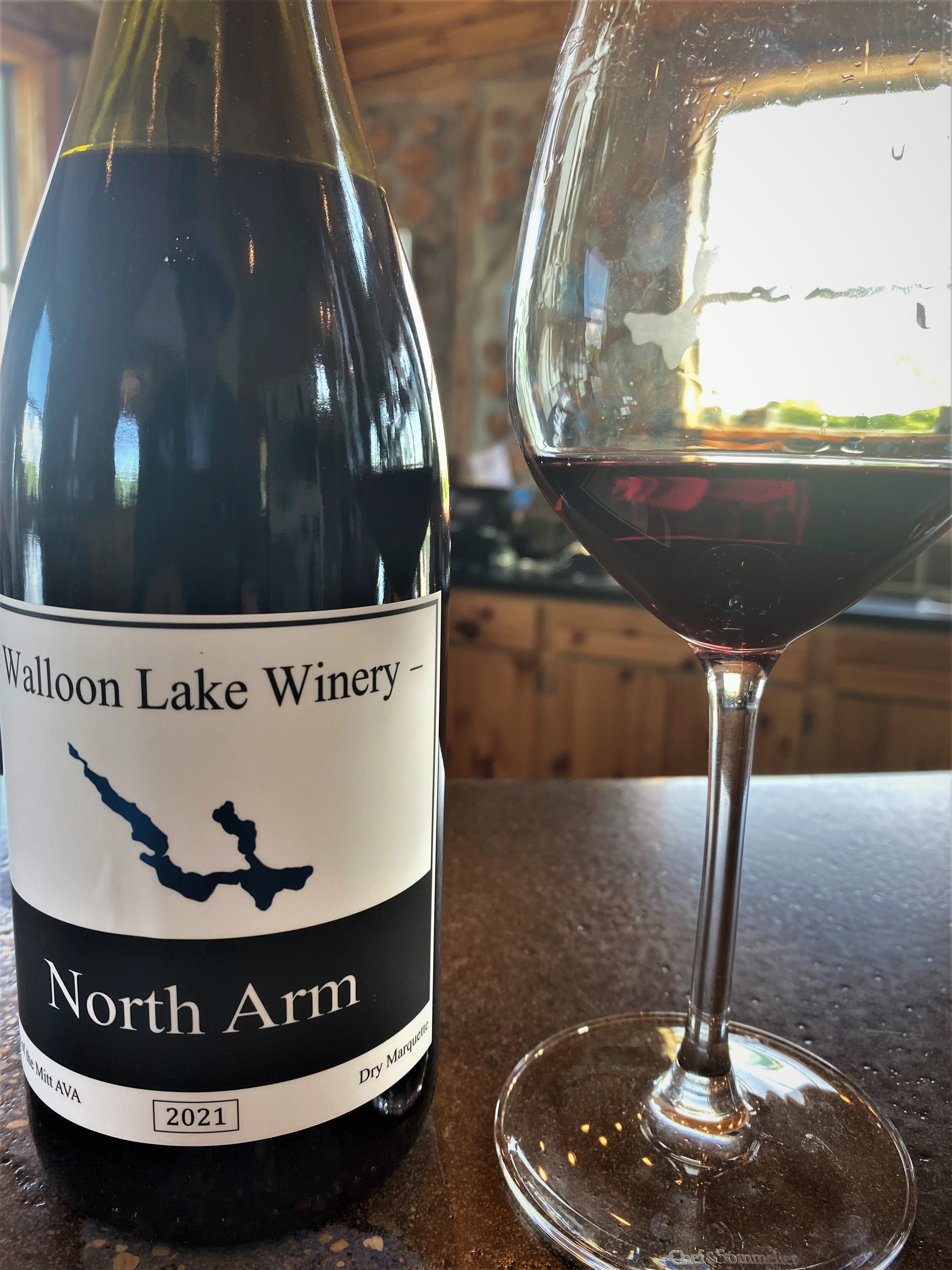 In 1954, Bob and Dorothy Dennis and their newborn son Tim, began the Dennis Farms, a small dairy operation on forty acres. In 2012 Tim was thinking about retiring and was researching Cold-hardy grapes and Dennis Farms Vineyard began. They had their own greenhouse that was built earlier and from there, they started planting in 2013; Marquette, Frontenac, Petite Pearl and Sabrevois for red wines and Frontenac Gris, Frontenac Blanc, and La Crescent for white wines. They also use locally grown grapes from the area. In 2014, they began building a tasting room, using lumber from their own property as well as stones found on the grounds as well. In 2018, they built their own crush-pad and Walloon Lake Winery was coming to fruition. They are part of the fourteen wineries that make up the Petoskey Wine Region. They are also part of the large Tip of the Mitt AVA, which is the latest federally recognized designation in Michigan in 2016 and encompasses 6 counties in the northern Lower Peninsula.