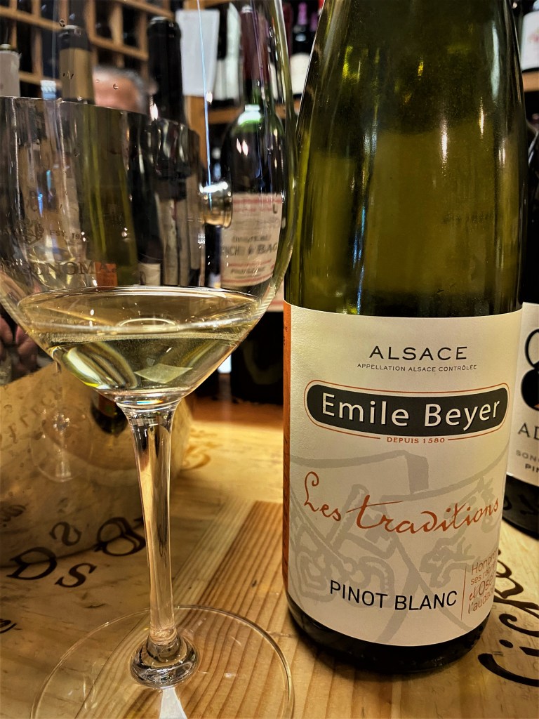 One of the joys of going into my local wine shop, the Fine Wine Source in Livonia, Michigan, is that I never know what will occur. If they are really busy, I know that I can always come back, rather than disturbing a private wine tasting session. Even though the customer had basically made his choices, and they were great, the shop introduced us both to a couple of wines from Emile Beyer from Alsace. Alsace, while now in France, has had a long and checkered history belonging both to the early French and early German territories. It is the only French region to grow significant amounts of Riesling, Gewurztraminer, and Pinot Gris. The fourteen generations of the Beyer family date back to 1580.