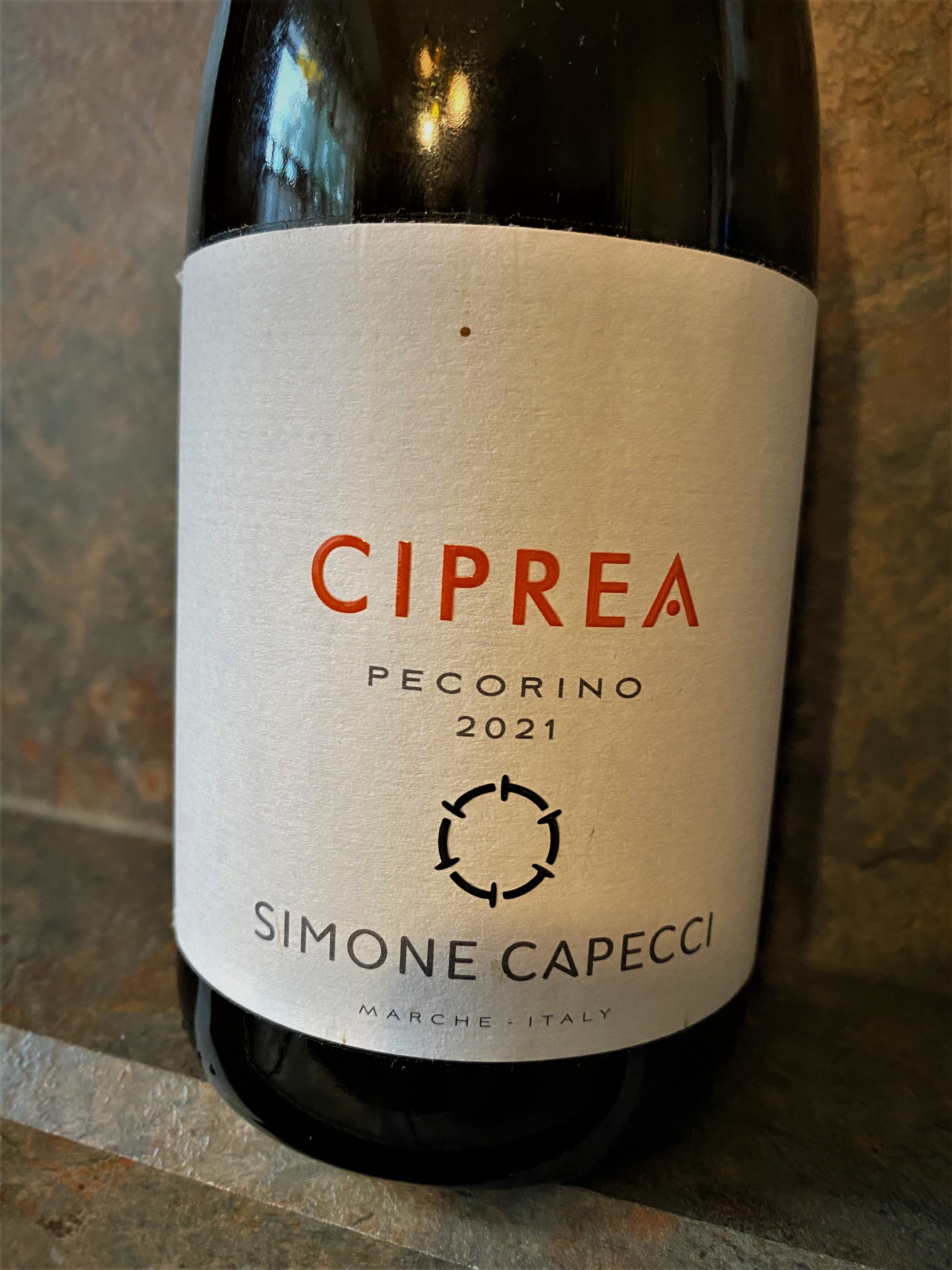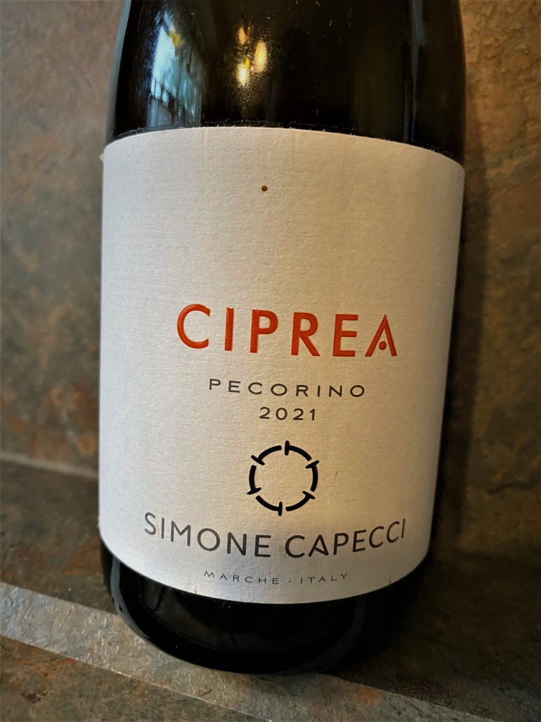 We started off by sharing a couple of appetizers. We had the Carpaccio di Filetto, choice tenderloing, thinly sliced, topped with grain mustard, baby arugula and shave Parmigiano-Reggiano. We also shared Capesante Proscuitto or seard sea scallops wrapped in Prosuitto de Parma on a bed of arugula and polenta with a roasted red pepper coulis. The ladies had Fruti di Mare Misto, a medley of grilled salmon, scallops and shrimp with herbed garlic lemon butter, with grilled asparagus and mushroom rice pilaf. While I had the Ravioli alla Aragosta or Zebra-striped lobster stuffed ravioli with a seafood saffron cream. The hardest thing with the meal was selecting a wine, and everyone reading this, will say, a piece of cake, just get a white wine. Which was the plan, but you realize that my Bride wanted the same wine, that we had the last time we were here, and I told her, that I have to switch things up. Our waitress was a trainee, and the wine arrived a little late, and I forgot to take a photo of the bottle, cork and glass of wine, but it is good that I take the empty home as a muse, until a write the story. We had a bottle of Simone Capecci “Ciprea” Offida Pecorino DOCG Marche 2021, and the winery was formerly known as Poderi Capecci San Savino and that they are all organic. The town of Offida is located in the Marche region of central Italy, and received classification in 2001 and then DOCG status in 2011. The white wines must either be Offida Passerina or Offida Pecorino and Pecorino only has official status in Offida. Pecorino means “little sheep” and the grape even though indigenous was rescued from obscurity (in the 1980’s), as it was being replaced by Trebbiano, but it thrives in higher altitudes with plenty of sun and cool breezes. The vineyard is twenty-sis years with clay and silty soil. Hand-harvested grapes in bunches, with a short maceration and fermentation in concrete tanks in September, and then aged on the dregs until Spring for bottling. A nice straw-yellow with distinct green tints with notes of yellow fruit, sage, pepper, and like a touch of peat. On the palate the wine is very crisp with fresh acidity, refreshing salinity and a nice medium count finish of terroir and spice.