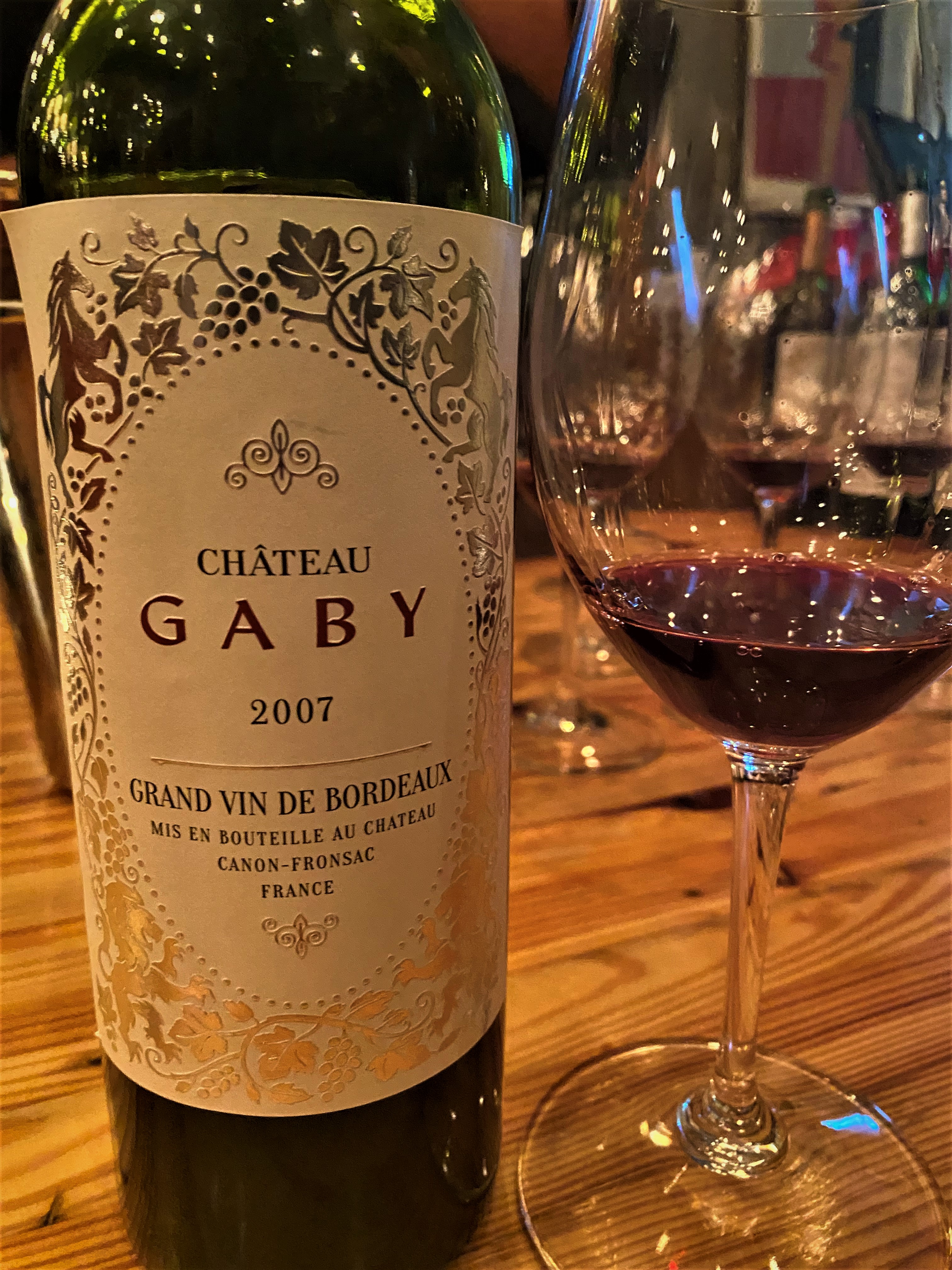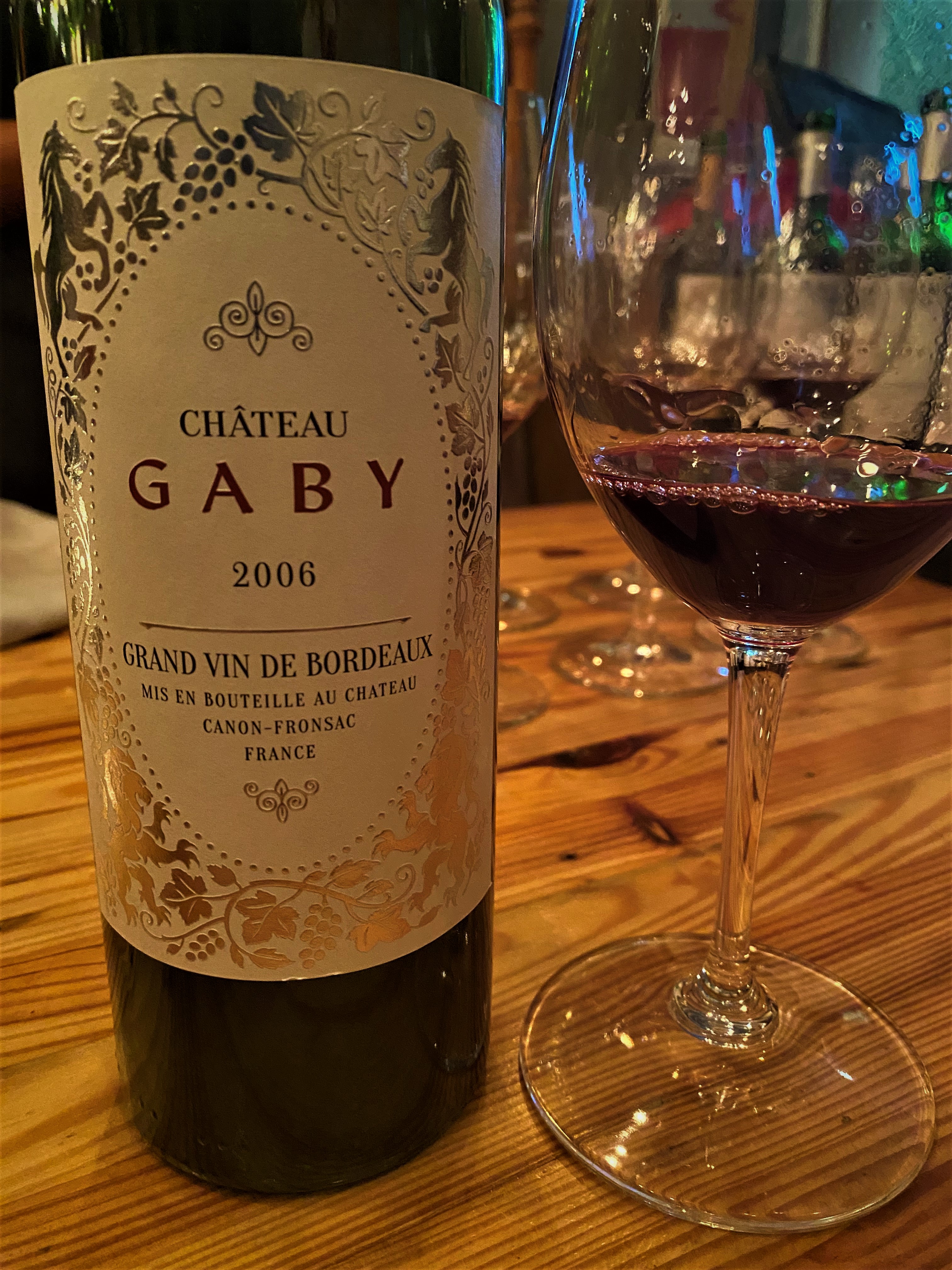 The third wine of the vertical of six was Chateau Gaby Canon-Fronsac 2006. The district is known for their soil which is more sandstone and limestone than clay, which allows the vines to have a certain resistance to hotter weather, which has helped during sweltering summers compared to other parts of Bordeaux. This wine is a blend of eighty percent Merlot, ten percent Cabernet Sauvignon, and ten percent Cabernet Franc. The year began with a wet spring, a very dry and hot summer, with an unusually wet August, but high temperatures and dry in September. The fruit is hand-harvested, and traditionally in the second week of October. The wine is aged for twenty-four months in French Oak, of which half is new. A deep ruby color that offered notes of black cherry, tobacco, and vanilla. On the palate the tones of the black cherry, tobacco, and vanilla were very evident, with silky tannins, and a good finish of fruit, iron and terroir.