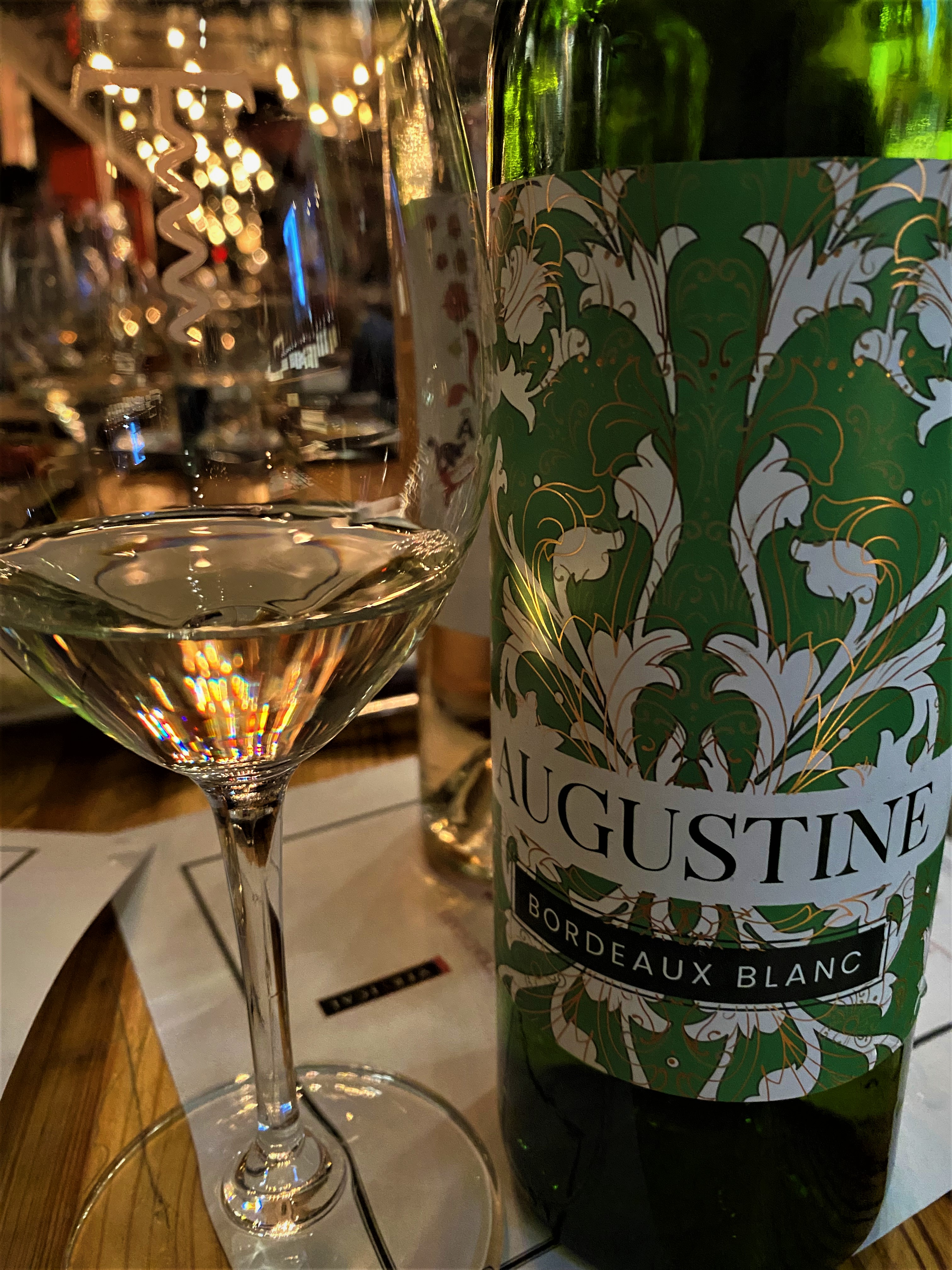 The first wine poured for our meal was Augustine Bordeaux Blanc 2022 made by Chateau Auguste. Chateau Auguste is a seventy-four-acre Bordeaux estate located in the Right Bank region of Entre-Deux-Mers, which means between two seas; the Garonne and Dordogne Rivers. A triangular region of sand and gravel atop layers of limestone, originally planted by the Romans. Chateau Auguste is owned by Vignobles Sullivan and under the guidance of winemaker Damien Landouar. An organically made wine of ninety-five percent a blend of Sauvignon Blanc and Semillon and five percent Muscadelle. This light straw-colored wine offered notes of white fruits and freshly cut grass. On the palate there were tones of pears, peaches, and almonds in a well-balanced and very easy drinking wine with a nice medium count finish of crispness and terroir.