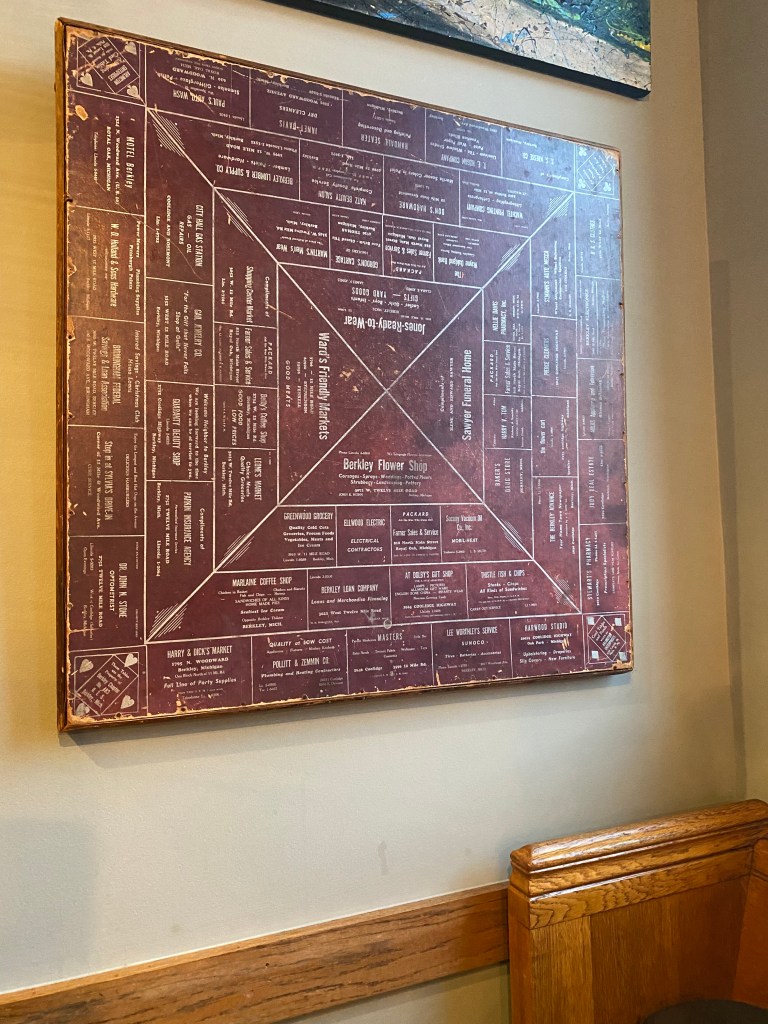 I have to admit that I enjoy eating ribs when dining out. They may not be the healthiest choice, and neither am I. I think back in the Old Country, ribs would not have been proper, because they are not listed as proper food in the Bible, and I think that being westernized brought about the other white meat in the diet. I had discovered a great place to have ribs, courtesy of my dinner club, and over the years I have seen plenty of people that I know, that also don’t eat ribs at home, but enjoy them out. I am also a pain in the arse, as you have already discovered by now, as I only want my ribs with light sauce and the meat should fall off the bone. I want to eat my dinner with a knife and fork and not with my hands. I was upset when my tried-and-true place closed, because of a kitchen fire. I sent out a plea among my friends on social media for a suggestion (not a chain). Republica is the one that sounded the best and closest to my desires. Though the restaurant became family owned in 2013, there was a unique display piece featuring businesses and services within the community from another era.