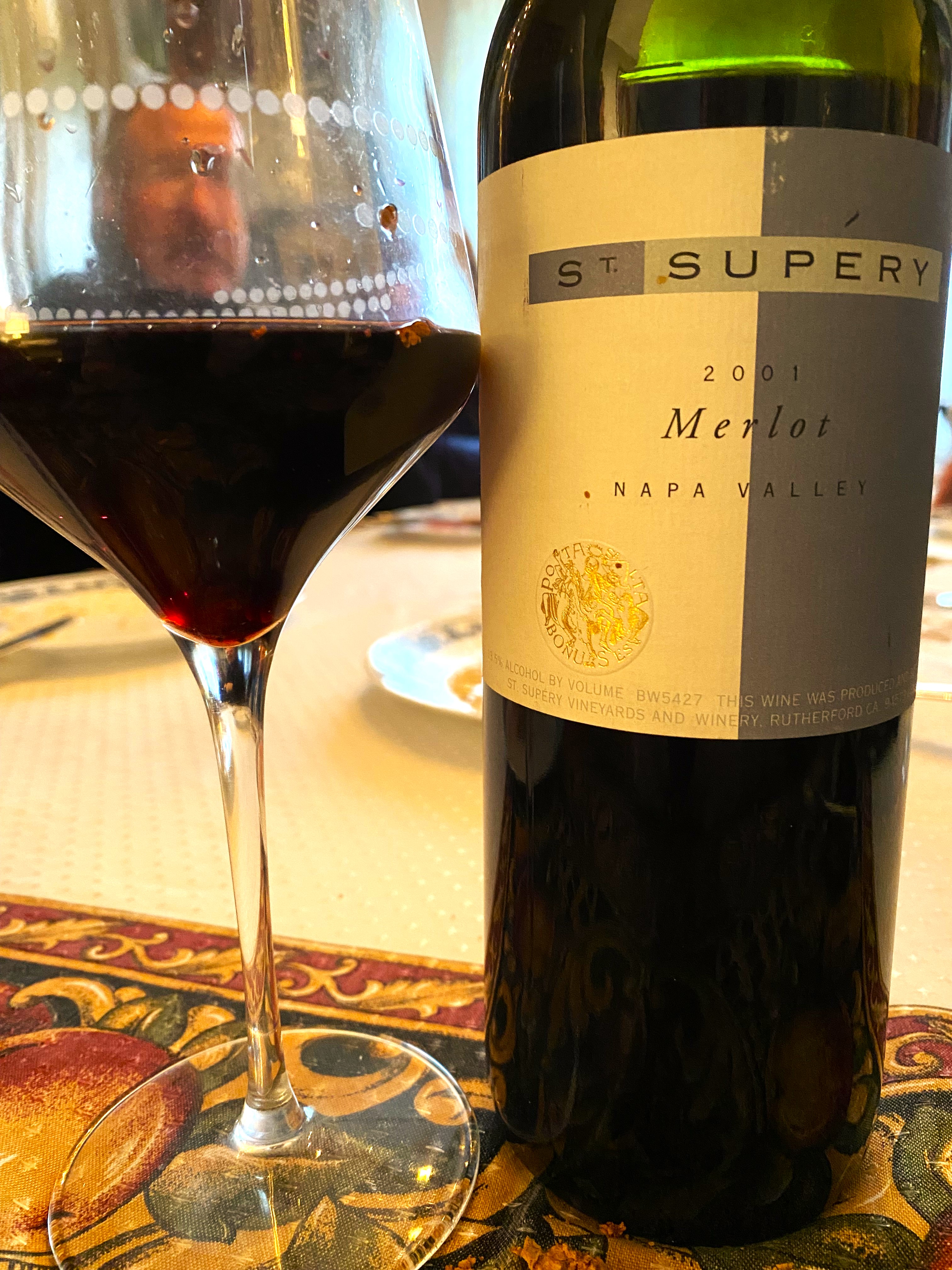 We also had Roast Tenderloin with a light marinade of lemon and garlic. There was also many assorted sides of vegetables and salads. After dinner we also had about eight cakes and pies for dessert, as we also celebrated three birthdays along with the Thanksgiving festivities. I went down to the cellar to find something interesting and returned with a St. Supery Merlot Napa Valley 2001, this wine was still one of their main offerings, before they really got into the single vineyard wines. St. Supery was one of the first wineries that we visited and they are located in Rutherford where they have an estate and they also own another much larger estate in Napa Valley as well. The original proprietor Robert Skalli came to Napa Valley from Corsica, where his grandparents founded the winery, Terra Vecchi. In 1982, he purchased the Dollarhide estate, a 1500-acre cattle ranch in the northeast corner of Napa Valley. He also purchased 56 acres in Rutherford, where the winery was built and still stands today. The first vintage of wine was produced in 1989 and the wines began to gain acclaim. The Skalli family sold the winery to the large fashion corporation Chanel in 2015; which makes me wonder if my “Lifetime Pass” will still be honored, but I haven’t thrown it away. I am glad to report that this wine was far from being over the hill, it was very mellow and drank like a Grand Cru, so no complaints from my Bride or myself or anyone else that tried the wine. I have always had a soft spot for Merlot from my student days. This wine was a rich purple with tinges of red and no browning or foxing at all and it offered notes of dark fruits, tobacco, and a trace of anise. For a twenty-two-year-old this wine was still bright and lively and not ready to roll over, with tones of black cherry, blueberry and still very supple tannins with a nice decent count finish of fruit and terroir.