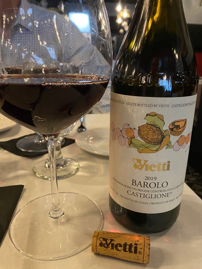 We were going to start with a white wine and then go with a red, but all interest was leaning towards a red and we ended up getting two bottles of Vietti Castiglione Barolo DOCG 2019. Vietti is a wine producer in Piedmont, known for their Barolo and Barbera wines, along with being one of the proponents of resurrecting the Arneis variety. The estate began producing its first wines with the family name in 1919 and they were one of the original wineries to ship Barolo to the USA. Most of the Nebbiolo grapes come from the vineyards in the Castiglione Falletto which is a mix of sand, chalk, and clay soils. The Castiglione Barolo is their traditional Barolo interpretation and the vines are between ten and forty-five years old. The grapes are hand-harvested, separated by individual cru locations, then gently pressed, and the juice is fermented for almost a month on the lees for about a month in a Stainless-Steel tank. Malolactic Fermentation takes place in wood, during the thirty months in large barrels and a small portion in barriques. Each cru is vinified separately and assembled before bottling. The wine was a dark ruby color that offered notes of plum, black cherries, blackberry, and secondary notes of rose petals and tobacco leaf. On the palate tones of the black cherry was prominent and blended nicely with smooth tannins and a touch of classic leather, ending with a medium to long count finish of fruit, spices, and terroir. We look forward to our next meeting with The Caller in the spring.