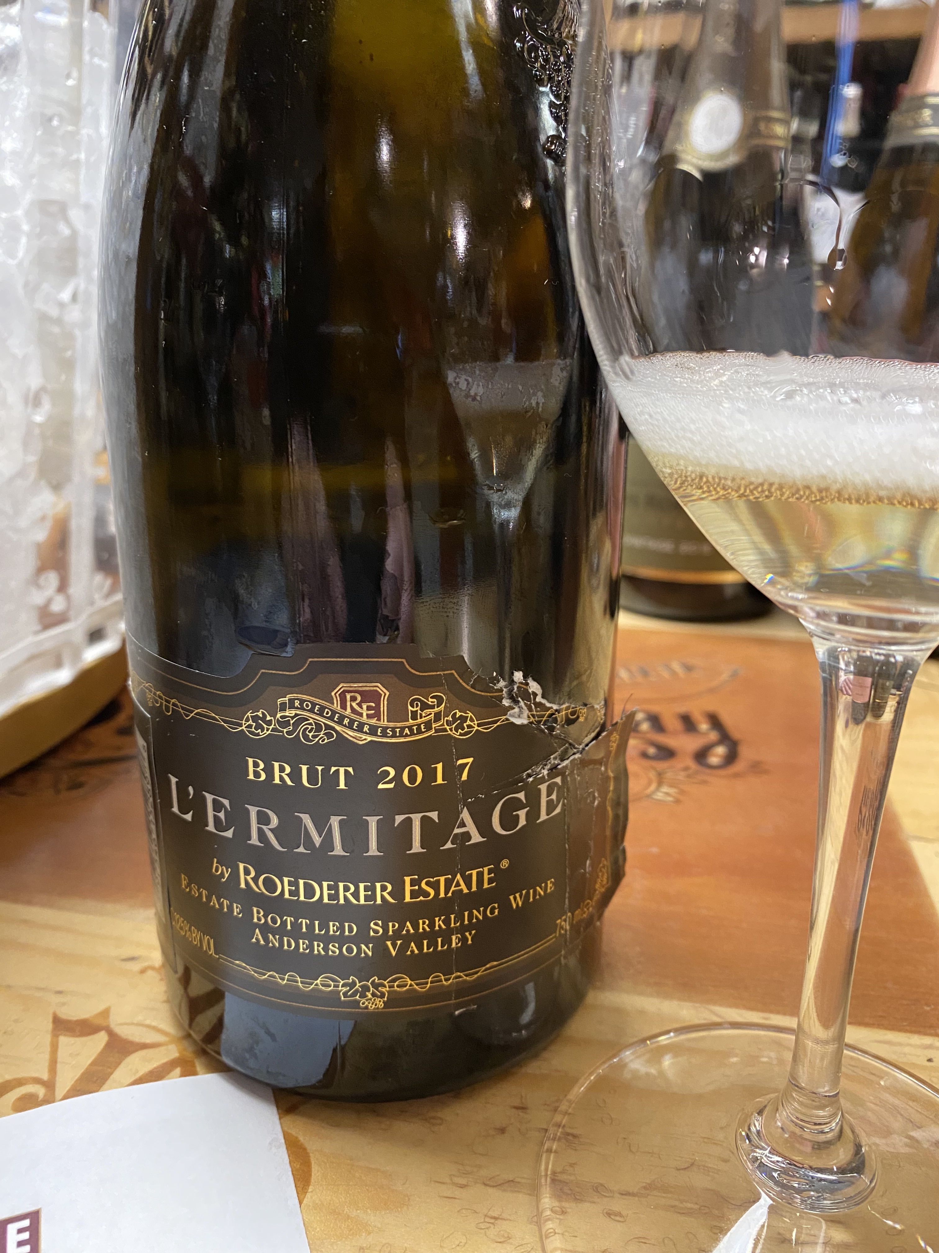 The last tasting was Roederer Estate L’Ermitage Brut Anderson Valley 2017. Roederer Estate was created by Louis Roederer Champagne in Anderson Valley in 1982 and their first release was in 1988. The sparkling wines are made using Pinot Noir and Chardonnay with the Methode Traditionnelle. The estate is six-hundred-twenty-acres of vineyards farmed with organic and biodynamic methods; the estate grown fruit is able to ripen slowly and retain acidity, which is key to the production of sparkling wine. Only the first pressing of fruit (roughly seventy percent) is used. Fermentation is done in Stainless Steel tanks, and the wines are blended with oak-aged reserve wines and spend a minimum of two years on the lees, prior to disgorgement. L’Ermitage is Roederer’s prestige cuvée and only made in exceptional years from the estate’s best Pinot Noir and Chardonnay and the first vintage was 1989. The wine is a golden-yellow with fine tiny bubbles and offers notes of yellow apple, pear, white flowers, brioche, and hazelnuts. On the palate a crisp wine with tones of pears, brioche, acidity, and a soft finish of fruit.