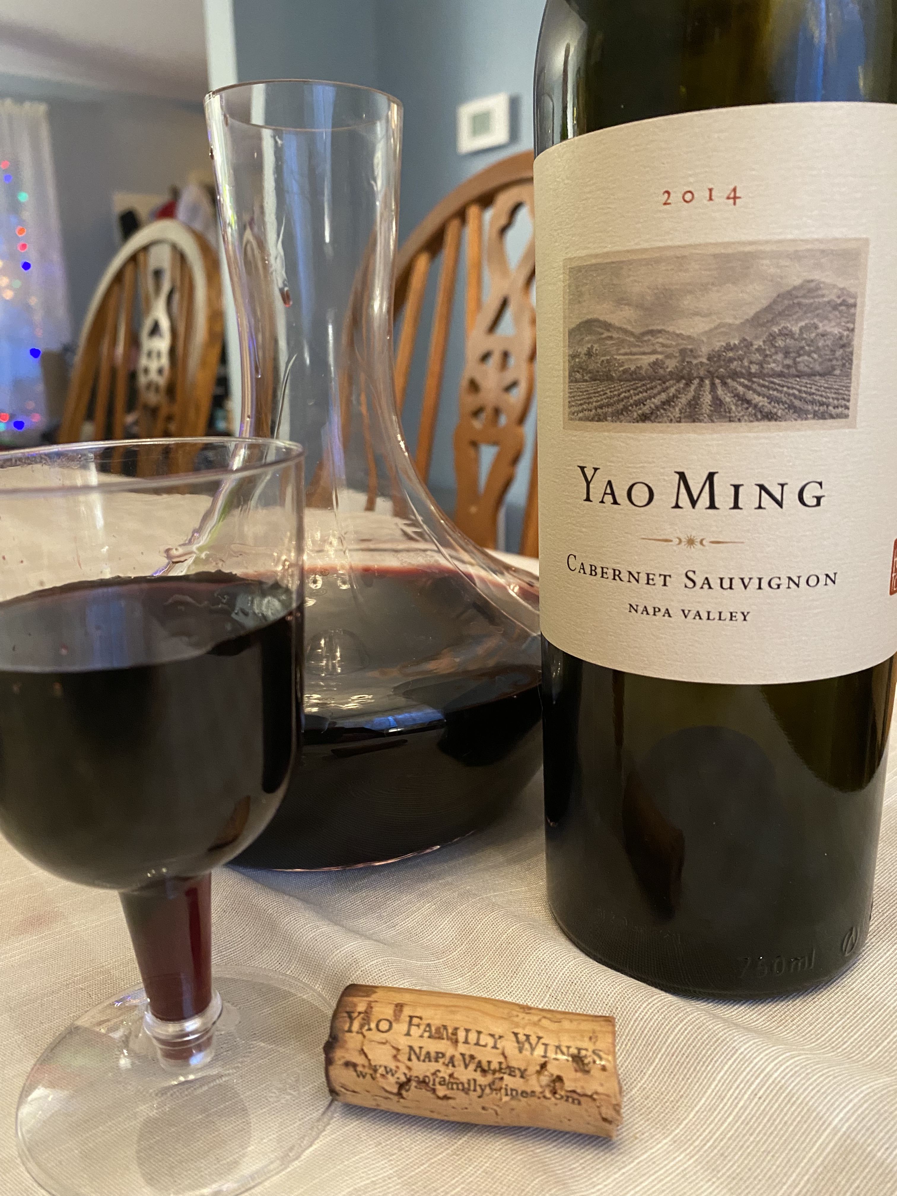 The dinner was also having a roast, so I decided to bring along a bigger red, as well, plus I wanted to see how it was cellaring, because I remember that we bought the last case of this wine in Michigan.  Now I make no bones about the fact that I am not a jock, and that I really dislike watching professional sports, but on occasion I will try to play most sports. The only two sports that I won’t even play as I don’t understand the games is Basketball and Soccer, because they just appear to be organized chaos to my mind’s eye, but I can appreciate the quality efforts of any true athlete. Now just because I don’t follow sports, there are still some athletes that one automatically hears about when they are good, and one basketball player was Yao Ming who stood 7’6” and was actually well coordinated and a star, in fact he retired from sports in July 2011 and began a new career as a winemaker in November 2011, barely enough time to realize that he had retired. Yao Family Wines owns no vineyards in Napa Valley, but they do have a tasting room in St. Helena, with contracts with vineyards in Coombsville, Atlas Peak, Oak Knoll District and St. Helena, but the wines carry the Napa Valley AVA. The Yao Family Wines Yao Ming Cabernet Sauvignon 2014 was the perfect wine to end the evening with. The wine was almost entirely Cabernet Sauvignon, but there was 5% Merlot, 3% Cabernet Franc and 2% Petit Verdot, and of the Cabernet Sauvignon there were three different clones and each was vinified separately before the blending. Here was a wine that was aged for eighteen months in French Oak, of which 65% was new, and they had created a wonderful drinking wine, and, it was stated that the winery feels that ten to fifteen years of cellaring would be easy for this wine. There were twenty-eight-thousand cases produced of this wine and the wine was really aimed for the Chinese market, which was just starting to get hot at the time.  This was a dark black-garnet colored wine with notes of black and violet fruits, vanilla, and spice.  On the palates there were tones of blackberry, black cherry, cassis, and plum, woven with spices, and the tannins were soft and supple and very integrated with a nice long finish of fruit and terroir.