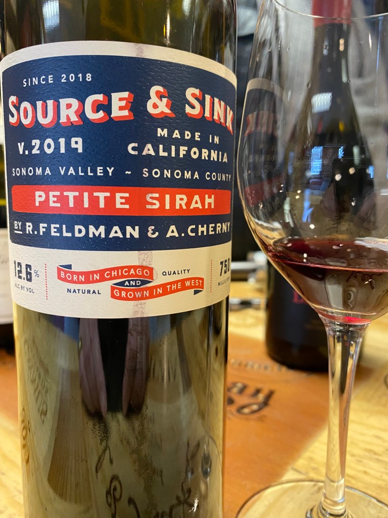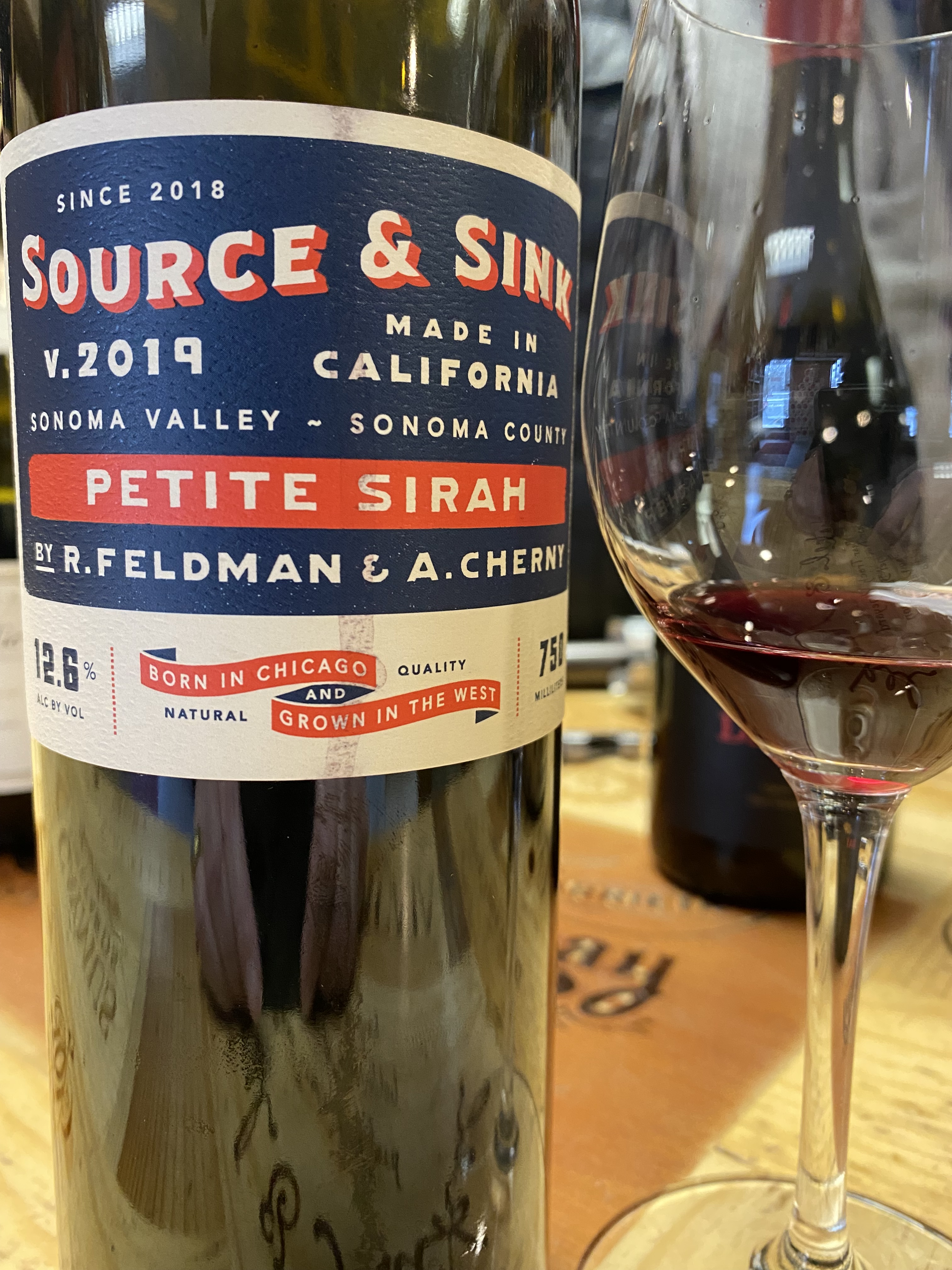 The next wine was Source & Sink Petite Sirah Sonoma Valley 2019. The winery was created in 2018 by two Chicago natives who met during the 2017 wine harvest in Sonoma. Rande Feldman was in Vineyard Management and Aaron Cherny was in Finance and Business Planning. The name refers to the positive flow of energy “the source” and how it is sent to the “sinks” (i.e. roots, leaf tips and fruit). The fruit comes from vines that were retrained to grow from Cordon to Goblet system, which yields large clusters from a single vineyard at the base of Moon Mountain. Petite Sirah, or Durif produces deep inky-colored wines from the small berries. The wine is a dark garnet color that offers notes of black fruits, tea, pepper, licorice and assorted herbs and spices, and violets. On the palate a big wine of “jammy” fruits, chocolate, and full tannins with a medium count finish of fruit.