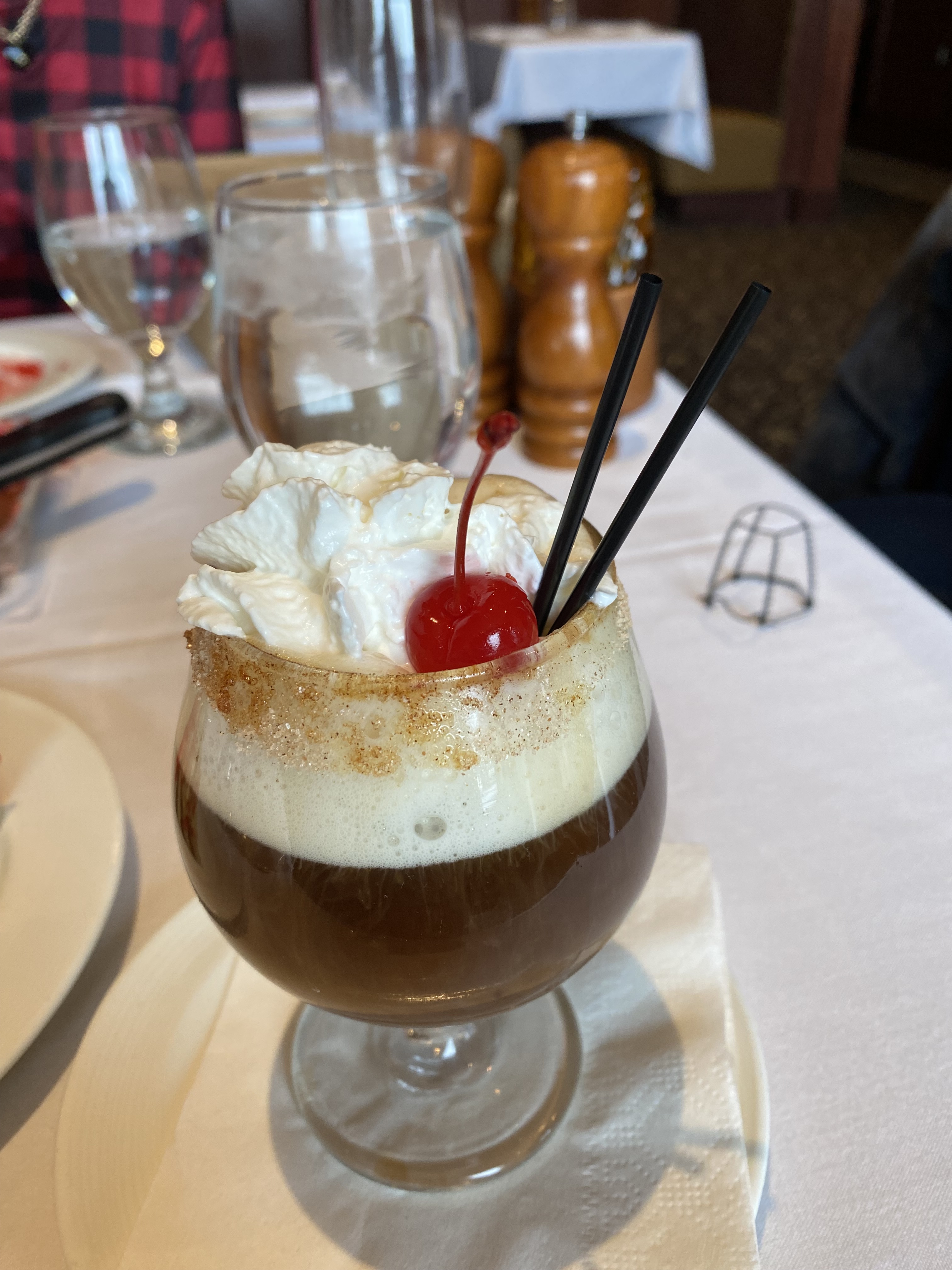 They are always saying that this restaurant is too expensive, or there is something wrong with a different restaurant; as they lose sight of the fact that one or the other is celebrating and treating.  We were going out to her city, as she lives out in the country, or it was country a few years back.  Originally it was planned for an afternoon of shopping and then a late lunch, and we would have cake and coffee at her house.  It was on a day that turned out to have a terrible snowstorm, and we were trying to change the reservations to an earlier hour, in fact, it turned out that it was when the restaurant was opening, and they were answering the phone, until about fifteen minutes before the doors opened.  We cautiously traveled on the highway and allowed all of the clowns to pass us in the storm at the same speed, if it was a summer afternoon, as we marveled at all the cars that have swerved and were in snow banks in the far left or far right lanes.  We got there, just as the doors were being opened and the guest of honor showed up, just a minute or two later, and she suggested that perhaps we could have a cake in the restaurant, as her subdivision was very treacherous for driving.  My twin dates both decided to start with Butternut Squash soup and a Caesar Salad with Salmon.  I was the deviant and had Scallops with a side order of Gnocchi with Bolognese Sauce.  The restaurant allowed us to have the cake that my Bride had brought with us, thinking that we would have it at her house, and we all had Spanish Coffees with the cake.