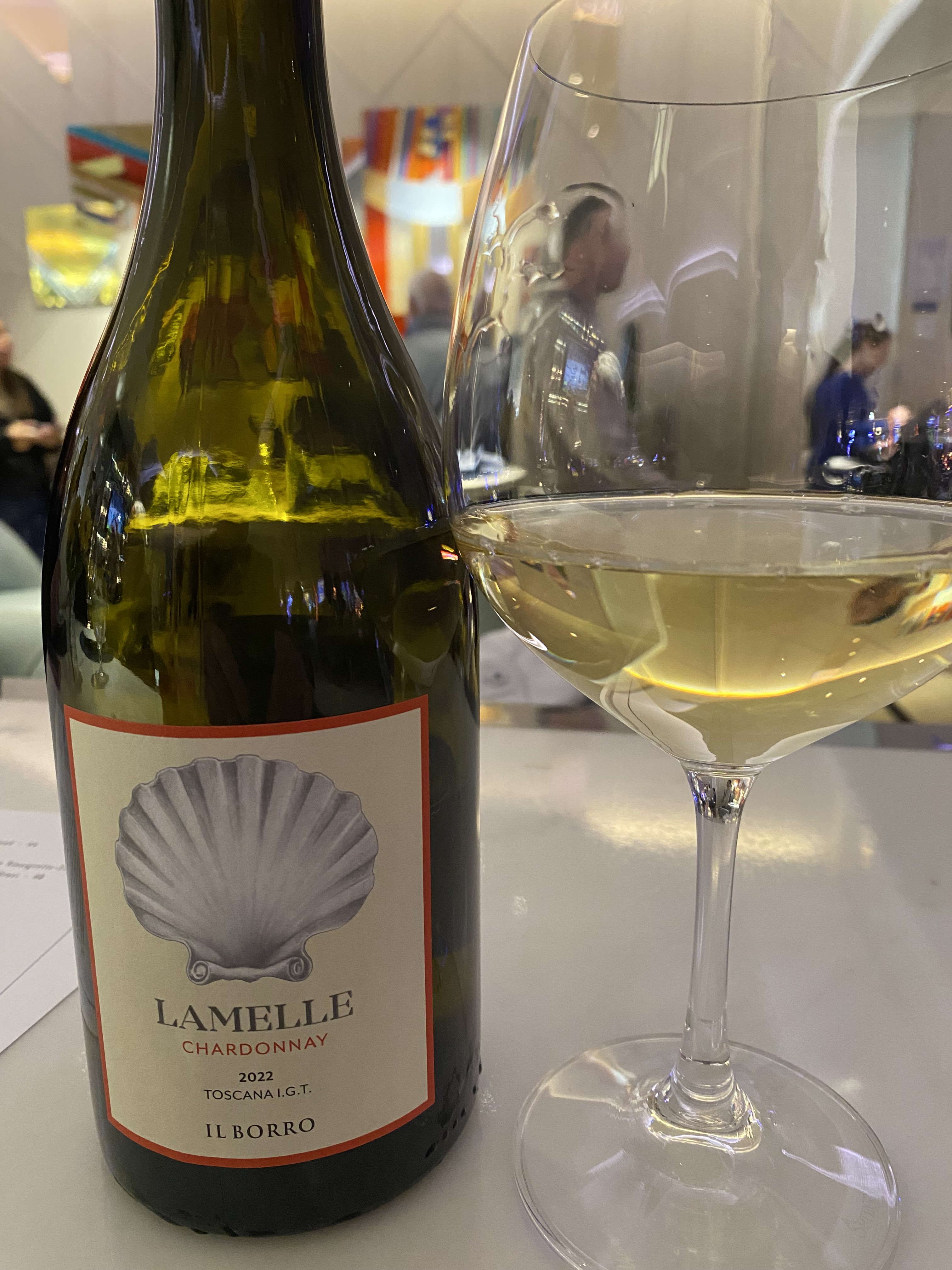 We then followed with Il Borro Lamelle Chardonnay Toscana IGT 2022, as Ms. Yoga enjoys her Chardonnay wines. Il Borro is located in the Valdearno hills of Tuscany planted primarily with classic international varieties, as well as Sangiovese. The vineyard is forty-five hectares and was planted in 1997 on a combination of sandstone and sandy-clay soils. The vineyard is 300-500 meters above sea level. The fruit is hand-harvested and two-thirds of the juice is fermented in Stainless Steel vats, while the last third is divided among clay vats, acacia barrels, oak barrels and “Alma” which is a special oak and ceramic barrel. The wine is then aged for ten months on fines lees with an evenly split among clay vats, acacia barrels, oak barrels, and the “Alma” barrels. The wine is then stored in the bottle for twelve months with a production of three-thousand bottles. A straw-colored wine that offered notes of citrus, yellow fruits, with a touch of rosemary, sage, and vanilla. On the palate the wine offered tones of fruit, with texture and body and finished with a nice medium count of fruit and terroir.