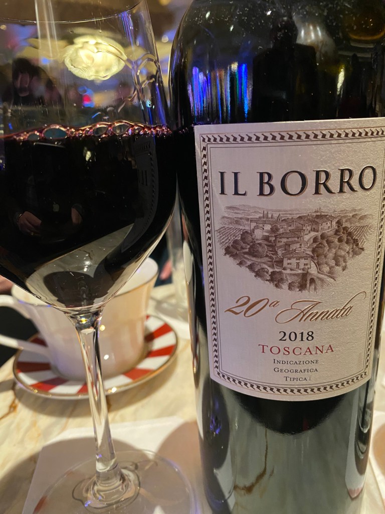 This was followed by Il Borro Twentieth Vintage Toscana IGT 2018. My second wine from this winery in a day, without being a tasting. Il Borro is located in the Valdearno hills of Tuscany planted primarily with classic international varieties, as well as Sangiovese. The vineyard is forty-five hectares and was planted in 1997 on a combination of sandstone and sandy-clay soils. The vineyard is 300-500 meters above sea level. This is their flagship wine, and before any planting was done, they commissioned a geological study and the soils were considered best for classic international varieties. This wine is a blend of fifty percent Merlot, thirty-five percent Cabernet Sauvignon and fifteen percent Syrah. The fruit was manually harvested and Initial Fermentation was done inn Stainless Steel vats. Then the wines were aged for eighteen months; the Merlot partly in large tonneau and the balance in oak barrels, while the Cabernet Sauvignon and the Syrah was aged in new and second use oak barrels. The wines were then blended and finished in Stainless Steel for an additional six months. A dark red to purple wine that offered notes of red fruit, florals, Sous-bois, cocoa, and tobacco. On the palate a big, velvety wine with tones of raspberry, currants, and kirsch blended with soft tannins and finishing off with a good medium count of fruit, spices, and iron.