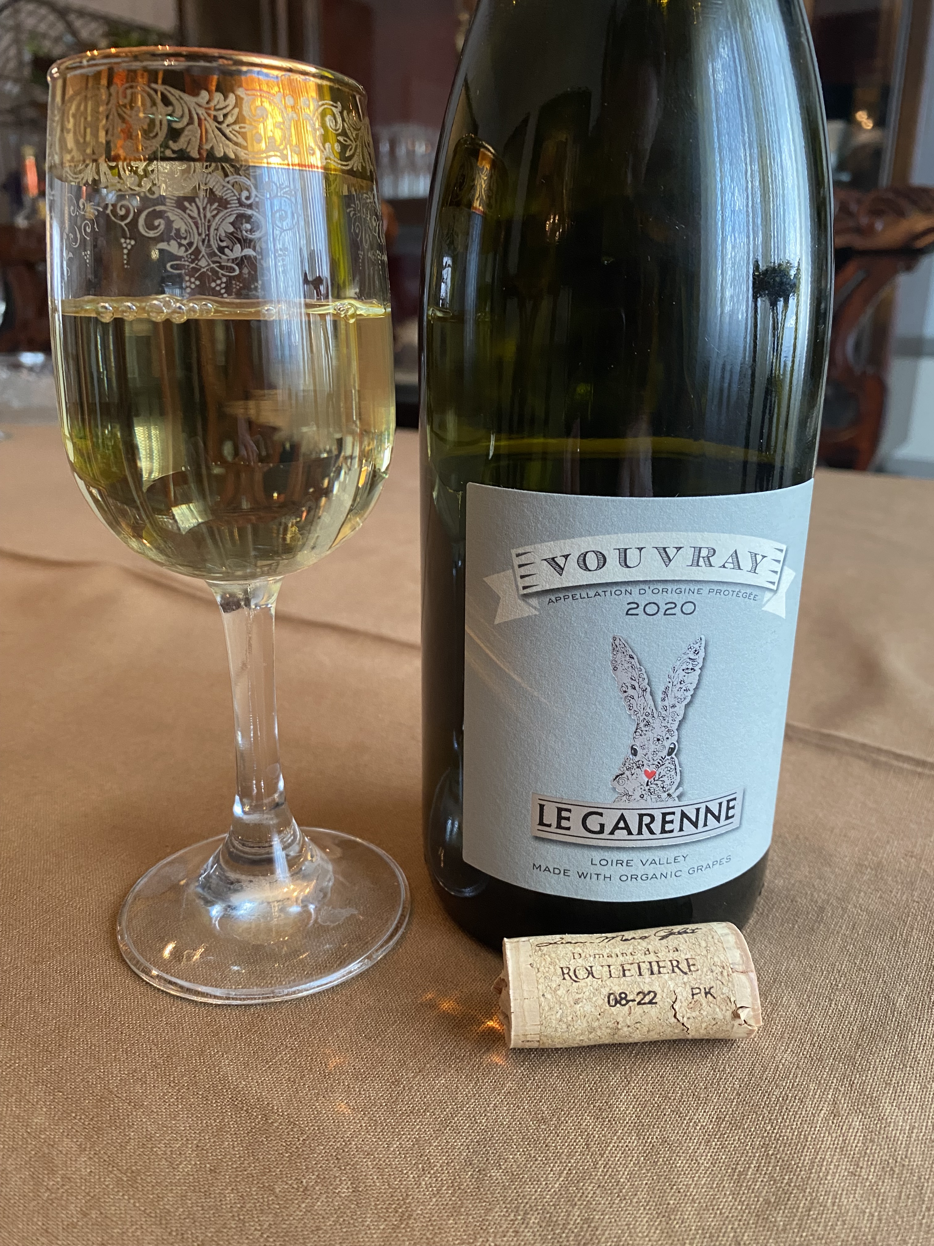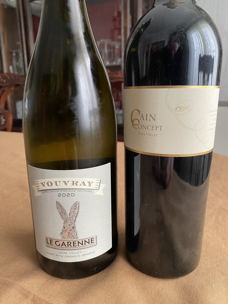 My Bride likes to have company over for dinner, even if they are not related to us. She always gets a little hyper, she knows how to cook for her family, and she definitely knows how to cook for me, after that it gets a bit dicey, maybe I exaggerate. My part of the formula is easy, I just have to pick out some wine. A winery that had previously sent me some wine, asked if I would be interested in a new sample, and since I knew that they had read my caveat on “samples” I felt secure enough to say yes, so we would start with a bottle of Le Garenne Chenin Blanc Vouvray Loire Valley 2020 (and I am also looking forward to the Chocolate Rabbit that they enclosed with the wine on Easter Day). As for the second wine, I went into our cellar and looked for something interesting that I had more than one bottle left and that was Cain Concept Napa Valley 1996. I might add, that our friends for the evening are not really into wine, but they do appreciate what we serve.