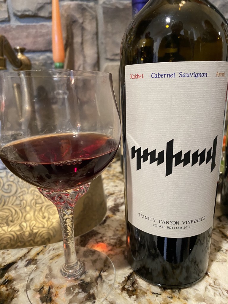 The first wine that I will mention is Trinity Canyon Vineyards Dukhov Vayots Dzor Armenia 2017 and Dukhov is one of the slogans of the Armenian Velvet Revolution, a peaceful movement from 1918 that raised hopes for a free election and means “with courage” or “without fear.” Trinity Canyons Vineyards was founded by three wine lovers in 2009 and associated themselves with winegrowers and winemakers in the Vayots Dzor Highlands, near the oldest established wine producing site in the world (Areni). Vayots Dzor is a mountainous province in southeastern Armenia and the motherland of Areni Noir; and contains the most wineries of any province. The Areni-1 cave complex is a famous archaeological site containing the oldest discovered winery, over 6,000 years ago. The vineyards here lie mainly between 950 and 1,200 meters above sea level. The wine is a blend of sixty-five percent Kakhet, twenty-five percent Cabernet Sauvignon and ten percent Areni Noir. Kakhet has been recorded since the Fourth Century, but until recently (Soviet Era) was reserved for Port-style sweet wines. It tends to be berry-forward and terroir driven, and offers tones of blackberry, black currant, fig, and black pepper. U.C. Davis claims that it is a relative of the French varietal Carbonneau. Areni Noir is a dark-skinned varietal indigenous to Armenia and then the Transcaucus, that is well adapted to the large temperature swings found in the region. It is known for its elegance and freshness. This wine underwent Initial Fermentation in Stainless Steel and then was aged for about fourteen months in Caucasian Oak. A medium red colored wine that offered notes of currants, strawberries, pomegranates, and pepper. On the palette it showed tones of red fruits, spices, soft tannins, and I thought some traces of rhubarb, with a short finish.