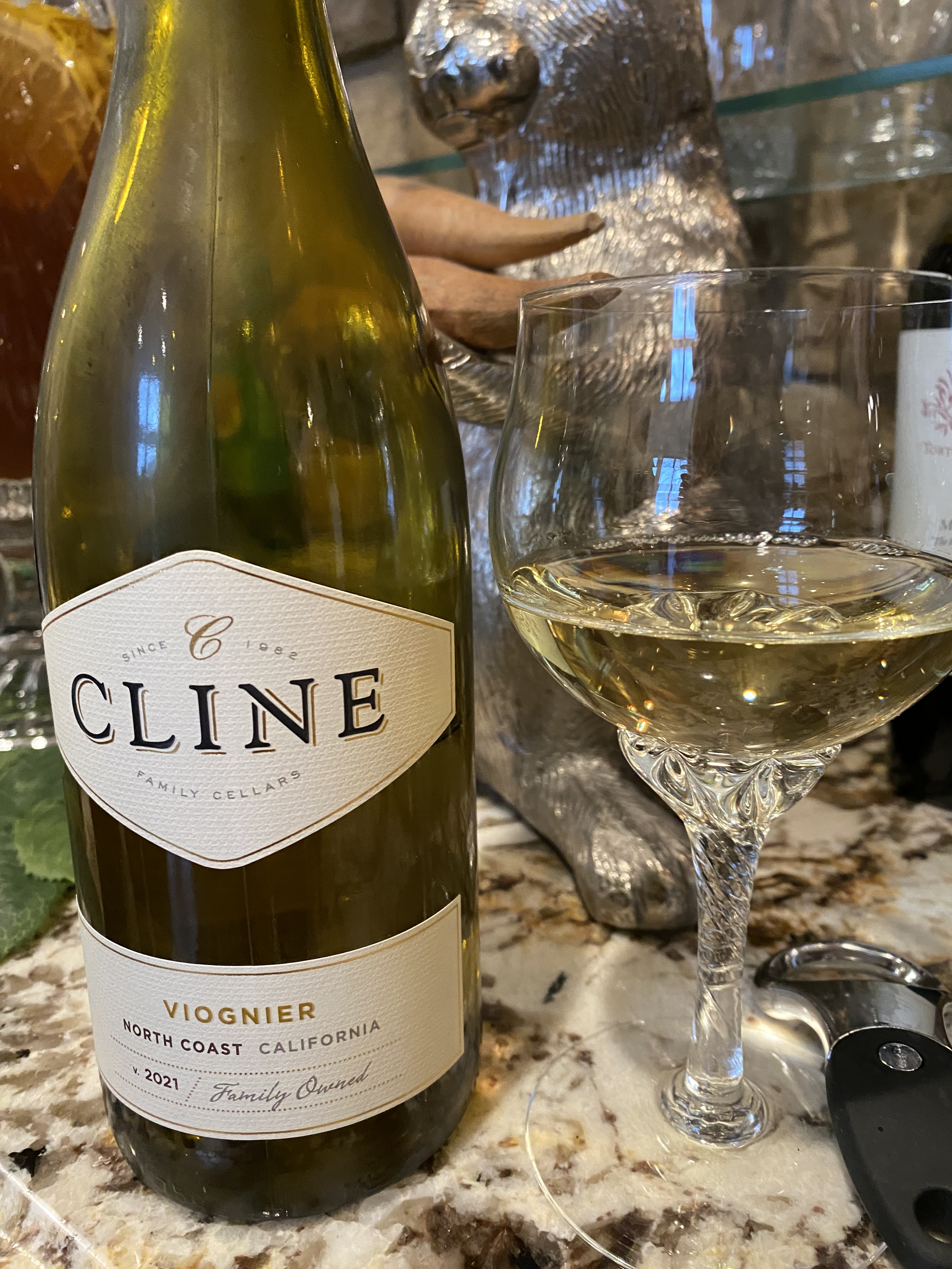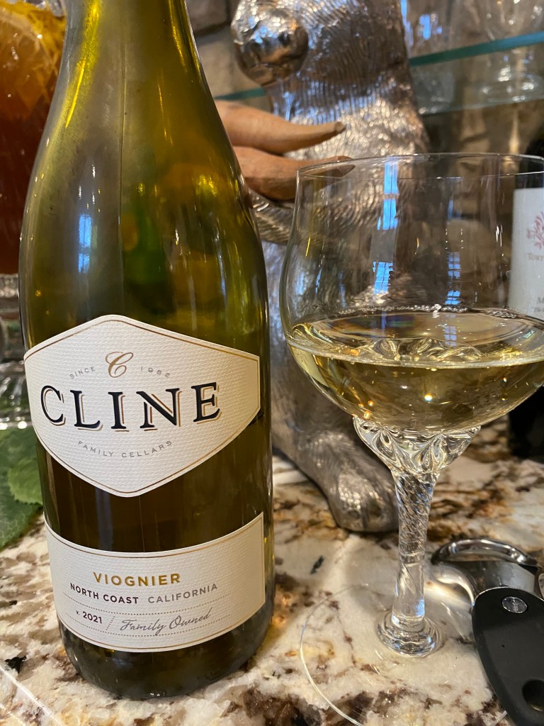 My Bride had started with assorted cheeses and crackers, and she also baked a Brie with Onion Jam, for a more savory finish. She made Deviled Eggs which I know for a fact is making a comeback, as I even see restaurants making them as appetizers. We also had shrimp with cocktail sauce, along with fruit plates and vegetable plates. She is always trying to make everyone eat healthy, and to me that is the antithesis of holiday meals, but what do I know. I guess even with the sister, that didn’t make it, some of the others wanted to sample the cocktail, so that kept my Bride busy, between courses. I started pouring Cline Family Cellars “Seven Ranchlands” Viognier North Coast 2021. Cline Family Cellars is a producer based in Carneros and known for Zinfandel and Rhone varieties and established in 1982 in Oakley. Fred Cline is one of the original Rhone Rangers of California. The “Seven Ranchlands” is a way of honoring both the seven children of the Cline family, and the seven vineyard ranches. The fruit for this wine is from the Catapult Ranch Vineyard in the Petaluma Gap, and the balance is from the Diamond Pile Vineyard at the base of the Wild Cat Mountain. The grapes are handpicked at night, where they are destemmed and pressed, and allowed to settle for forty-eight hours before racking. The Catapult portion was inoculated with wild yeast, while the Diamond Pile portion was allowed to ferment naturally in barrels. After fermentation, the wine was aged in neutral French Oak for six months before blending and bottling. This was a very soft colored white wine with notes of mango, guava, and pineapple. On the palate tones of dried apricots, pears, and banana in a full-bodied wine with nice acidity and a nice finish.