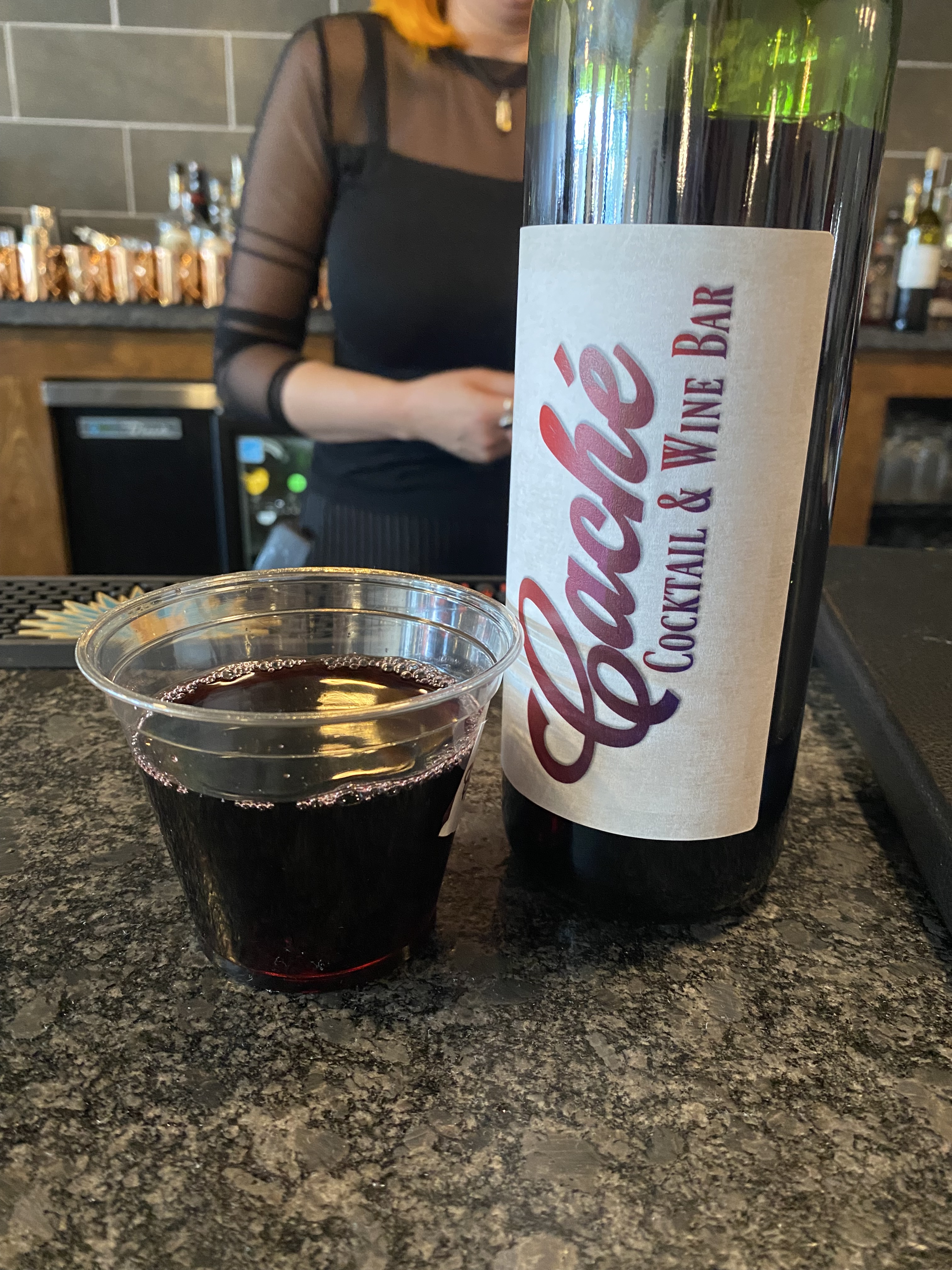 We walked into Cache Cocktail & Wine Bar and I was all set to have a nice glass or two of wine, before the craziness of the evening was going to unfold. It turns out that the Memorial Day weekend also coincided with the Downtown Social District weekend, so the wine bar was anticipating hordes of partyers and not hordes of wine tasters. So, they had more help and less options; as the merry-makers could take their purchased drinks outside where the street area was blocked off and plastic was the only glass being offered. There were no food options and only their own branded wines were being poured. I was not a happy camper, but they tried to appease me, and let me look at the wine carte; I would have been a happy camper. Some of the wines that they stocked, could also be found in my cellar, so that did impress me, but I couldn’t buy a bottle of anything, but what they were geared for. I volunteered for the good of my blog to try two of the house wines. There was a Cache Pinot Grigio California NV, Cache Chardonnay California NV, Cache Cabernet Sauvignon California NV and a Cache Merlot California NV. The wines were “cellared and bottled” by Free Run Wine Company of St. Helena, California. I could not find anything about this company, but I can make kind of an educated guess that they are a custom-crusher and warehouse for independent winemakers that cater to both individual wineries that can’t afford their own equipment yet, and for jobbers that will affix “house labels” for restaurants and caterers. I did feel better as I recognized Free Run Wine Company as the supplier of the house wines at The Butter Run Saloon that I have wrote about a couple of times. So, I was sorry that I couldn’t have noshed on any of their food offerings, as the bar went up several notches for me.