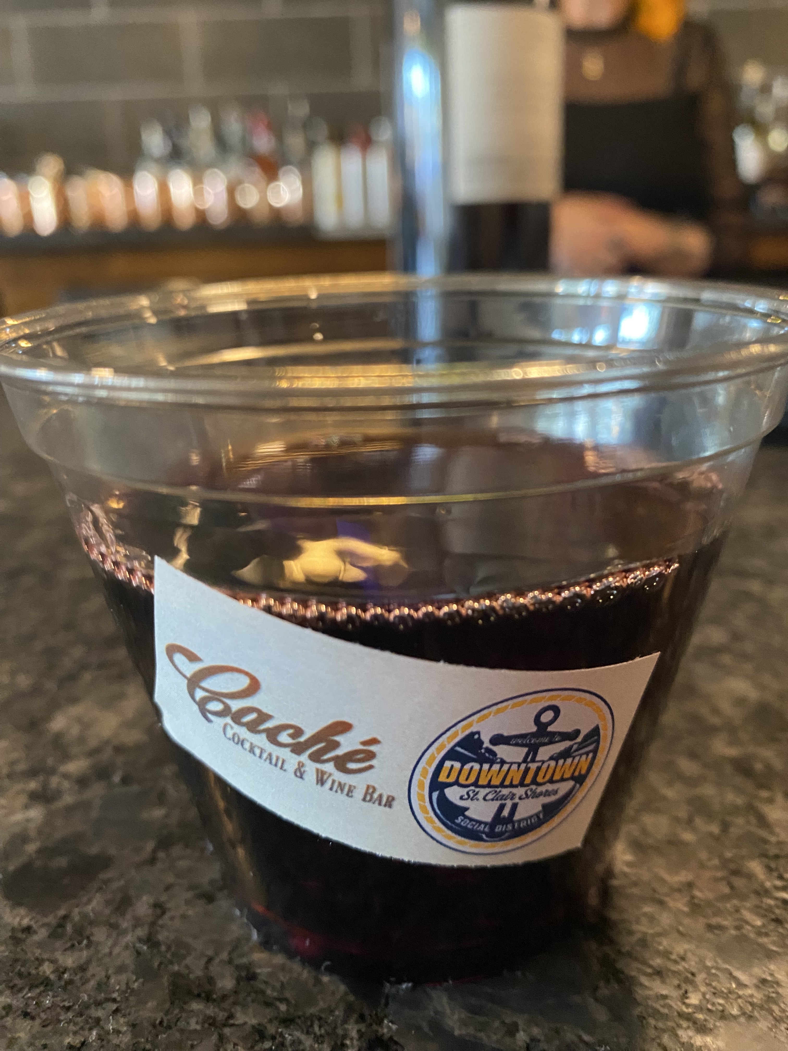 During the Memorial Day weekend, some of the Louisville clan came up, for an intensive visit. On the books a Detroit Tigers Baseball game was planned, an evening of Drones, think of fireworks without the pyrotechnics and noise, a Memorial Day Parade and whatever could be crammed into the schedule. My Bride was going to be in charge of securing a restaurant during a holiday weekend. All eyes were kind of focused on Saint Clair Shores, Michigan. A restaurant that was near where the Drone Show would be, was chosen, the Shores Inn; the owner told my Bride that they would not take reservations, but if she got there, about an hour early, they would (wink, wink) create an area for the crowd. Well, originally there was going to be eleven, maybe two hours before when we were all getting together that number had swollen to twenty-two. We got there an hour early, the manager said that he would make it happen, so my Bride decided that she wanted to take me to Cache Cocktail & Wine Bar, which was one block away and it would be a better place to drink some wine.