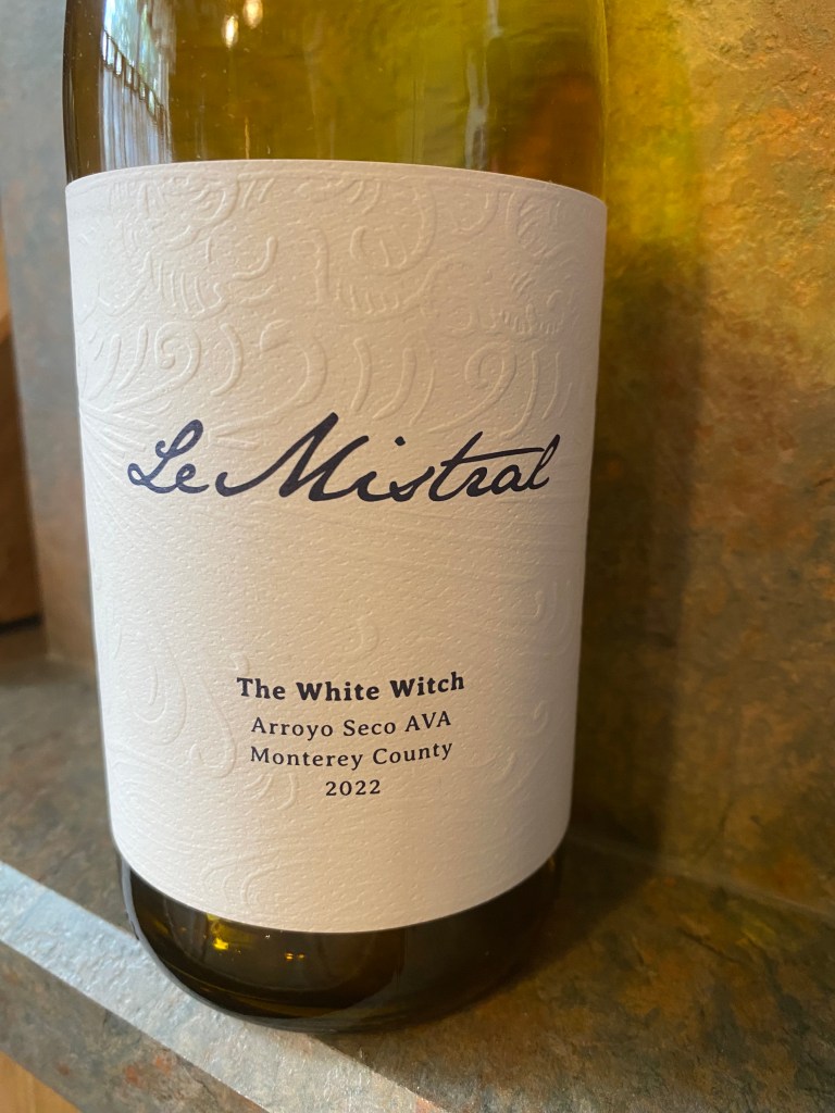 The first wine that came out of the carton was Le Mistral White Witch Arroyo Seco AVA 2022. Folktale Winery and Vineyards was originally founded in 1982 by Bob and Patty Brower, as Chateau Julien Wine Estate and they wanted to replicate their wine experiences in France to the Carmel Valley. In 1996 they expanded the property and structures to ensure that they were making great wines, and my Bride and I visited Chateau Julien each time we had holidays in Carmel-by-the-Sea. In 2015, the property was purchased by local winemaker, Gregory Ahn, and renamed Folktale Winery and Vineyards; and as a side note, from what I gather the label Chateau Julien is still property of the Brower family. The five-acre vineyard at the winery is one-hundred percent organically farmed, and they are working towards this goal in the three-hundred acres in the Arroyo Seco that they maintain. The name “White Witch” was coined by owner Greg Ahn for Monterey’s daily barrage of coastal fog and wind that moves from the cool Pacific Ocean down the Salinas Valley every afternoon. The wine is a blend of thirty-eight percent Roussanne, thirty-four percent Marsanne, twenty-two percent Grenache Blanc, and six percent Viognier, and grown on the estate. Each variety was harvested and pressed separately, before being racked to barrel for Initial Fermentation, and then continued through for Malolactic Fermentation. Then the individual wines were blended in the spring, barrel aged until mid-summer, when the wine was bottled. The wine has an estimated aging potential of about eight years. The winery suggests the nose will offer notes of peach, apricot, honeydew melon, pear along with chalk, almond husk, and hay. On the palate, the fruit tones continue with moderate acidity, balanced, and a soft texture and creaminess.