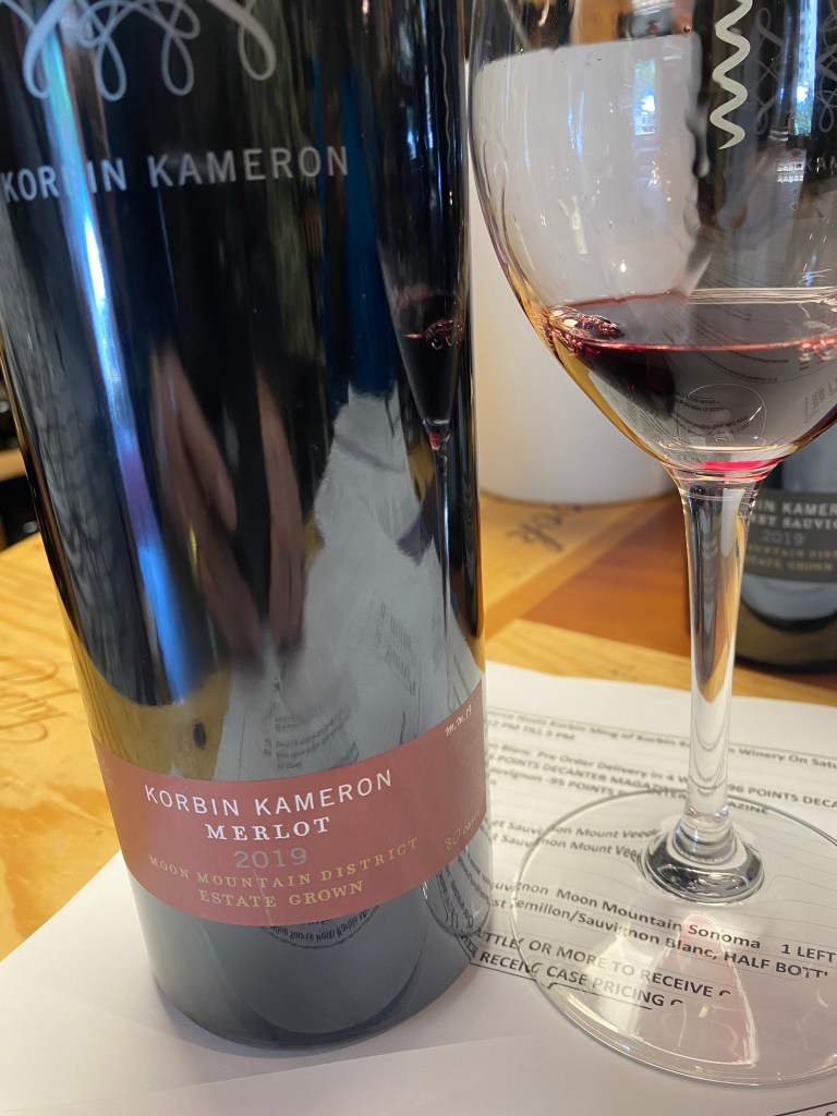 The rest of the tasting featured red wines and we began with Korbin Kameron Merlot Moon Mountain District, Sonoma County 2019. When Mitchell Ming began planting the estate, all five red Bordeaux varieties, as well as Semillon and Sauvignon Blanc were selected, after initial soil analysis. Phil Coturri, the Vineyard Manager has been there since the beginning, and it has been said that no one has more experience farming mountain vineyards in Sonoma with thirty-five years pioneering organic and biodynamic winegrowing in California. This wine was aged for eighteen months in French Oak, of which fifty percent was new; with eighty cases produced. A nice deep garnet color wine that offered notes of cherries, dark berries, alluring scents of cinnamon and cloves. On the palate tones of black cherries, cola, and spices, blended with mellow tannins and a nice medium count finish.