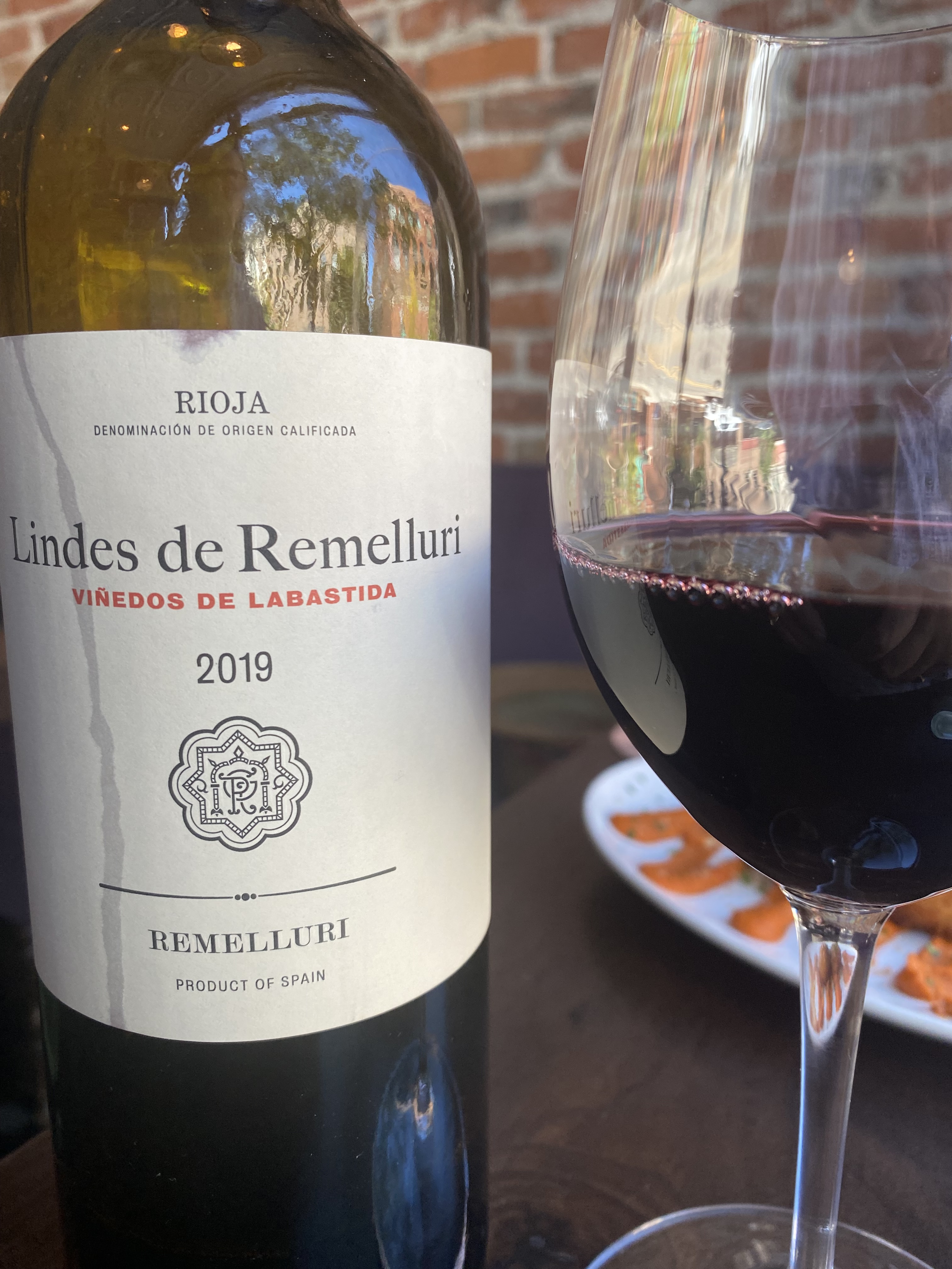 We finished off our Tapas dinner with Gambas al Ajillo (grilled prawns, garlic, Fresno pepper, parsley, olive oil, baguette), Datiles con Chorizo (bacon wrapped and Chorizo stuffed dates, quince, Dijon mustard). Rodaballo Y Caviar (grilled turbot, brown butter Miso, sturgeon caviar, Pippara pepper escabeche) and Peras al Rioja (poached pears in Rioja wine, vanilla ice cream, hazelnut crumble). The red wine that we went with was Granja Nuestra Senora de Remelluri “Lindes de Remelluri Vinedos de Labastida” Rioja 2019. Remelluri is a family winery near Labastida in the Alavesa zone of Rioja and known for their use of Tempranillo. The estate was founded by monks in the 14th Century, though the vineyards probably preceded that time. The estate has changed ownership over the years, but in 1967 it was purchased by Jaime Rodriguez, and in 2010 his children took over. Fruit from established contract growers in the nearby village goes into the wines sold under the Las Lindes de Remelluri label. Each is named for the village in question: Sanillas de Buradon, Labistida, Rivas de Tereso, San Vincente de la Sonsierra, Pecina and Abalos. The vinification for these wines is essentially the same, using native yeasts, little new oak is used, light filtration and fining and ten months in French Oak. For comparison the Labastida vineyards lay at a higher altitude, hence the wine is higher in acidity and lower in alcohol than the San Vincente; consequently, each designation will be unique. A deep blackish-purple wine that offered notes of dark fruits, raisins, and sous-bois. On the palate there were strong, muscular tones of dark fruit, vanilla, oak in a savory, chewy wine with tight tannins and a good medium count finish of fruit and terroir.