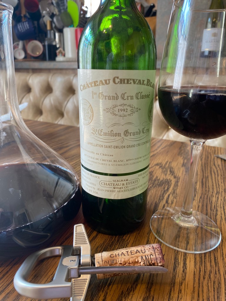 The main course of the dinner, besides the cakes and desserts was Lamb sautéed with Mushrooms and Armenian Pilaf. I went into the cellar and did a very substantial raid, for the occasion and chose a wine that I have never had, so it was my first. I opened and decanted Chateau Cheval Blanc 1’er Grand Cru Classé Saint-Emilion Grand Cru 1992. Vines have been recorded as planted since the 14th Century, but really took place in the 19th Century when core plots were added from purchases from the nearby Figeac estate, and eventually with replanting plans the wine is known for being about half Merlot and half Cabernet Franc. The estate began after gaining its first medal at the 1862 Universal Exhibition in London, and that was just the start, and thus paved the way for the chateau to be built. The estate is in the northwest sector of the region, bordering Pomerol and had thirty-nine hectares, divided into forty-five plots; of which fifty-two percent is Cabernet Franc, forty-three percent Merlot and five percent Cabernet Sauvignon. The plantings are based on the patchwork of soils (about half and half) of either clay or gravel over sedimentary rock. In the first classification of Saint-Emilion in 1955, it was awarded the highest possible rating – Premier Grand Cru Classé A. After 166 years of continuous family ownership, Bernard Arnault (LVMH) and the late Baron Albert Frere jointly purchased the estate. In 2022, the estate famously withdrew from the listing; though it is still regarded as one of the greatest wines of the Bordeaux region. After a small harvest in 1991, the 1992 harvest was considered quite generous. It was the first year for the winery employed small crates for the manual harvesting and sorting of the fruit. The wine was aged from sixteen to eighteen months in new French Oak. I used my Durant to uncork the wine, and the cork was in very good condition, and decanting the wine for its age was necessary as I could visually see sediment in the bottle. The wine had a beautiful deep ruby color with no evidence of foxing or browning. The nose offered mild notes of dark fruits, florals, espresso, and tobacco. On the palate the fruit and tannins had merged, and there was a muted taste and finish, and in hind-sight, I probably should have opened the wine five years earlier, and the fruits would have been lusher. I still savored it, knowing that it will probably be the last and only wine from this estate that I will ever encounter.