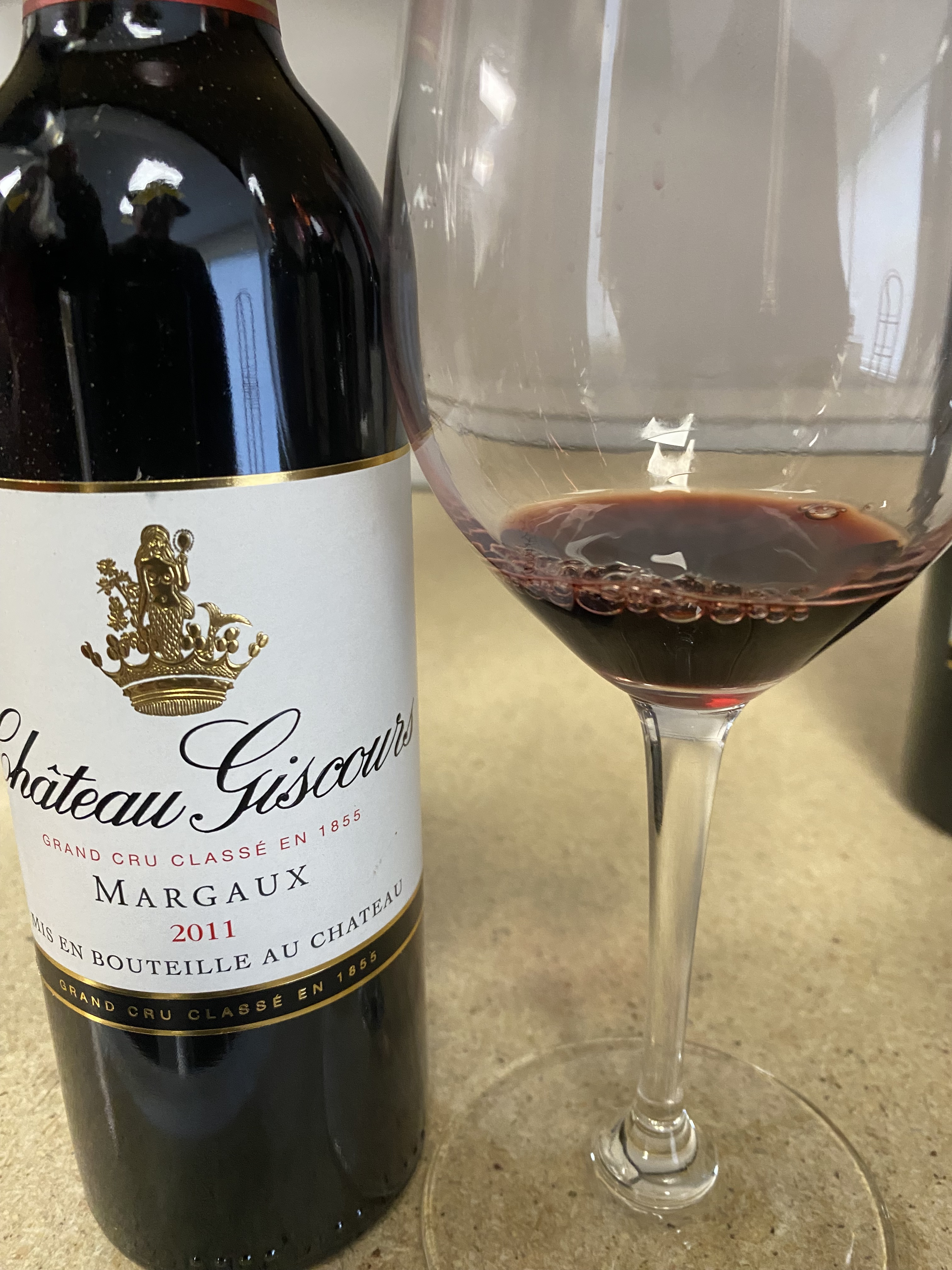 The first wine that was poured for us was Chateau Giscours Margaux 2011, in half-bottles, and the wine is a Troisiemes Crus (Third Growths). A little side note is that Margaux is probably my favorite commune in the Medoc and the wines from there are the most easily to encounter; and there are twenty-one Grands Crus Classes wine from this one commune. Over the years it has been described as “an iron fist in a velvet glove.” Chateau Giscours dates to 1552, when Pierre de Lhomme bought a house called Guyscoutz, enlarged the property and planted the first vines. The vineyard is one of the largest on the Left Bank with 165 hectares, of which 102 hectares is in the Margaux appellation. The wine is a blend of seventy-five percent Cabernet Sauvignon, twenty percent Merlot, and five percent Petit Verdot. The fruit is manually and optically scanned, and Initial Fermentation, and Maceration occurs in both Concrete and Stainless-Steel vats for a period of thirty-five days. Then the wine is aged for seventeen months in French Oak, of which half is new barrels. The dark ruby-red wine offers notes of black cherry, blueberry, currants, and traces of cocoa. On the palate, this medium-bodied wine offered tones of black fruits, cedar, chocolate, well-balanced with silky and velvety tannins; it ends with a good medium-count finish of fruit and cedar.